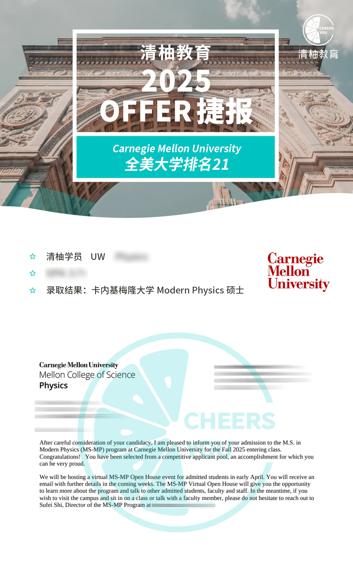 卡内基梅隆大学Modern Physics硕士录取!
