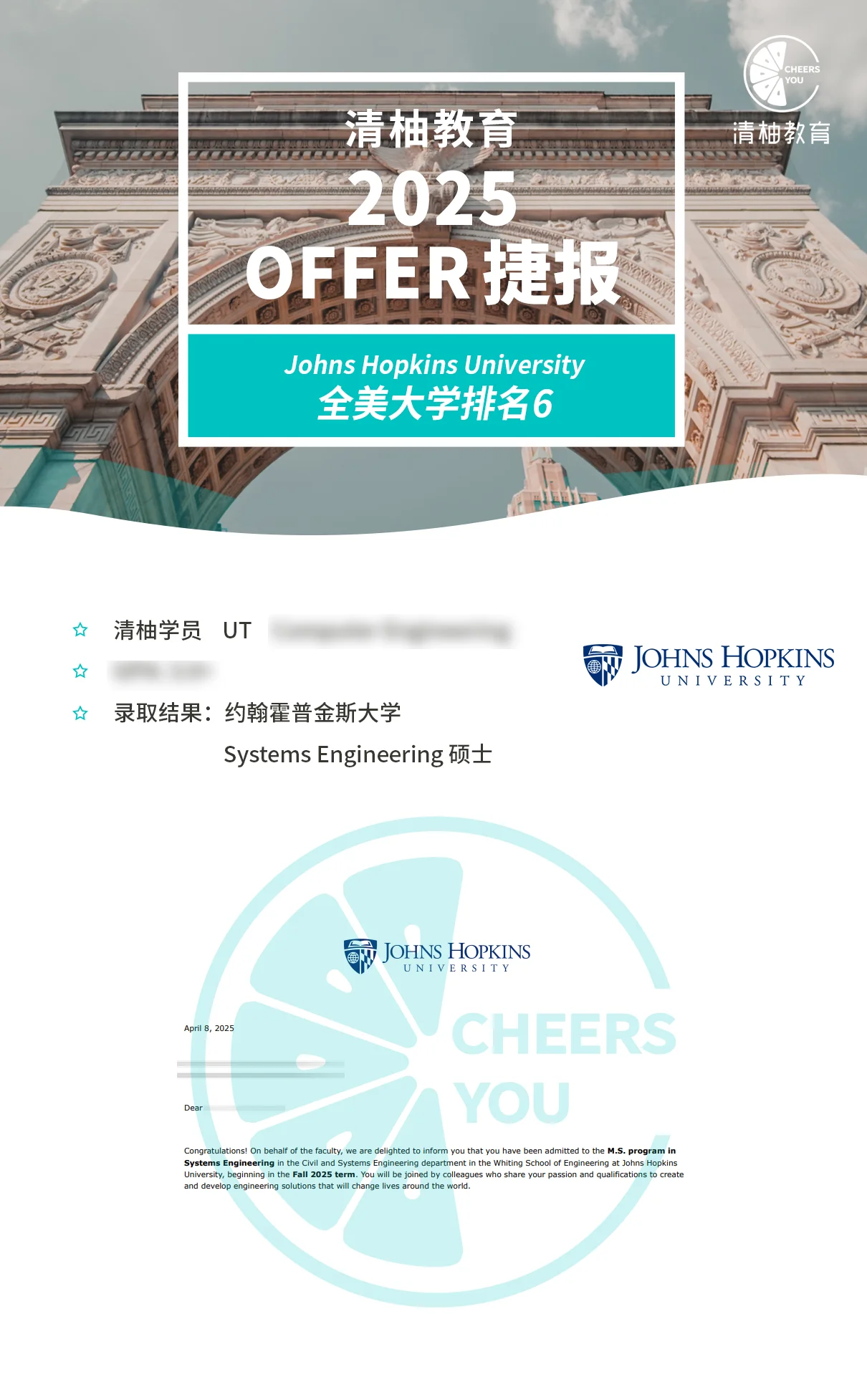 约翰霍普金斯大学Systems Engineering硕士录取!