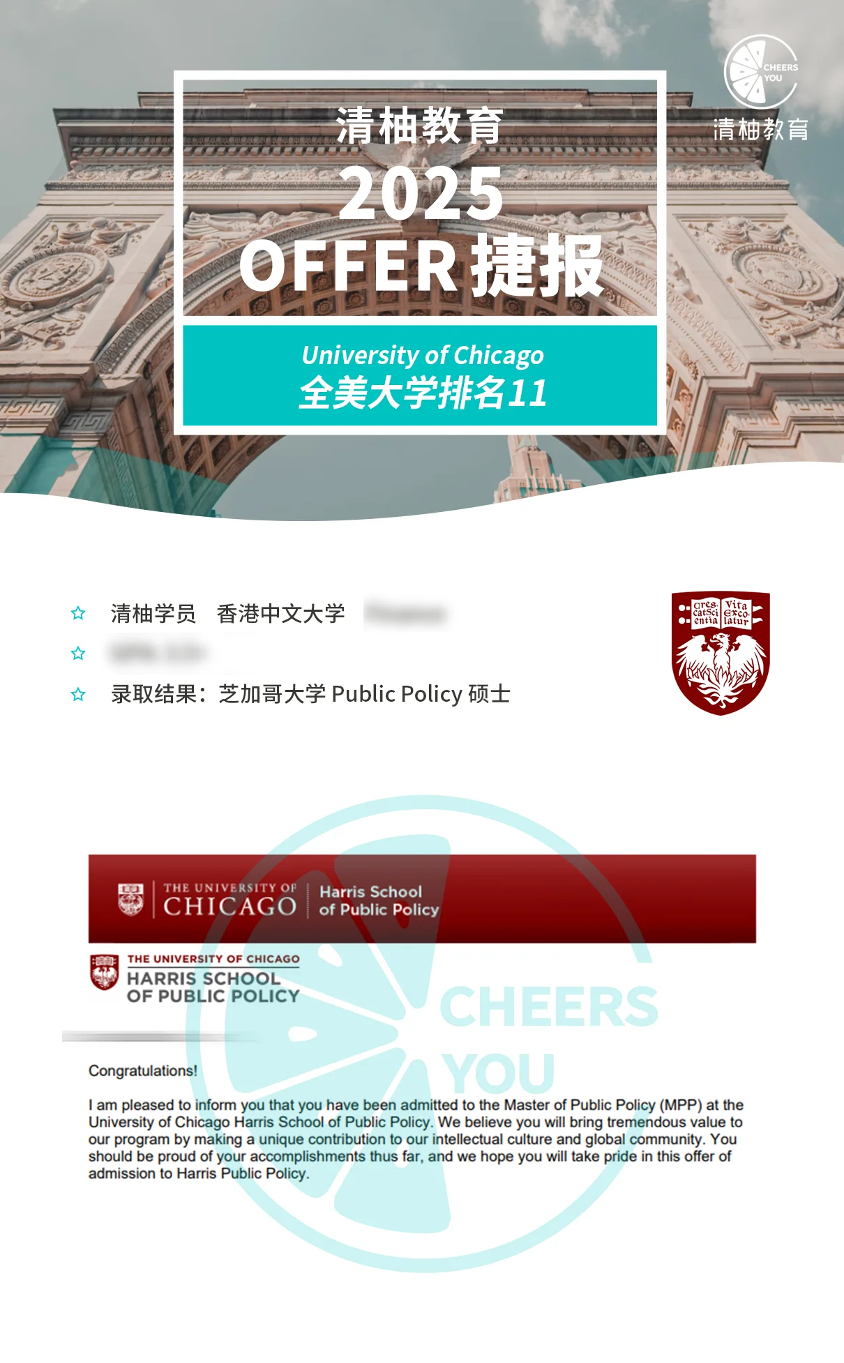 芝加哥大学Public Policy硕士录取!