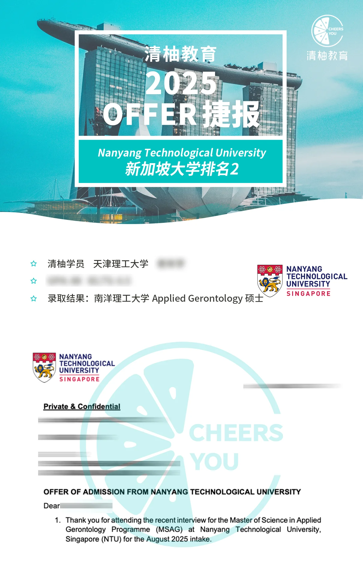 南洋理工大学Applied Gerontology硕士录取!