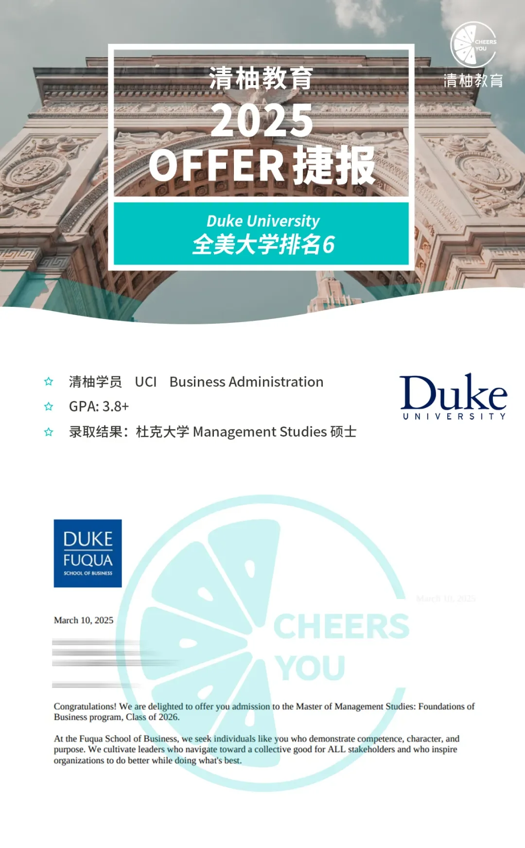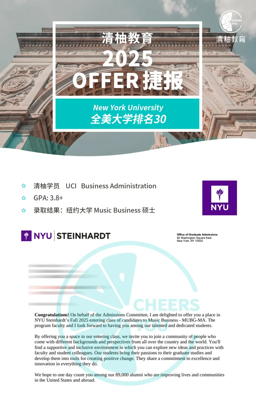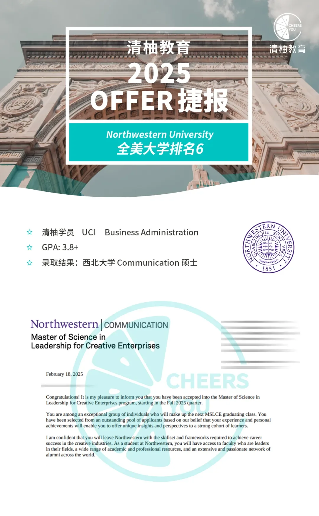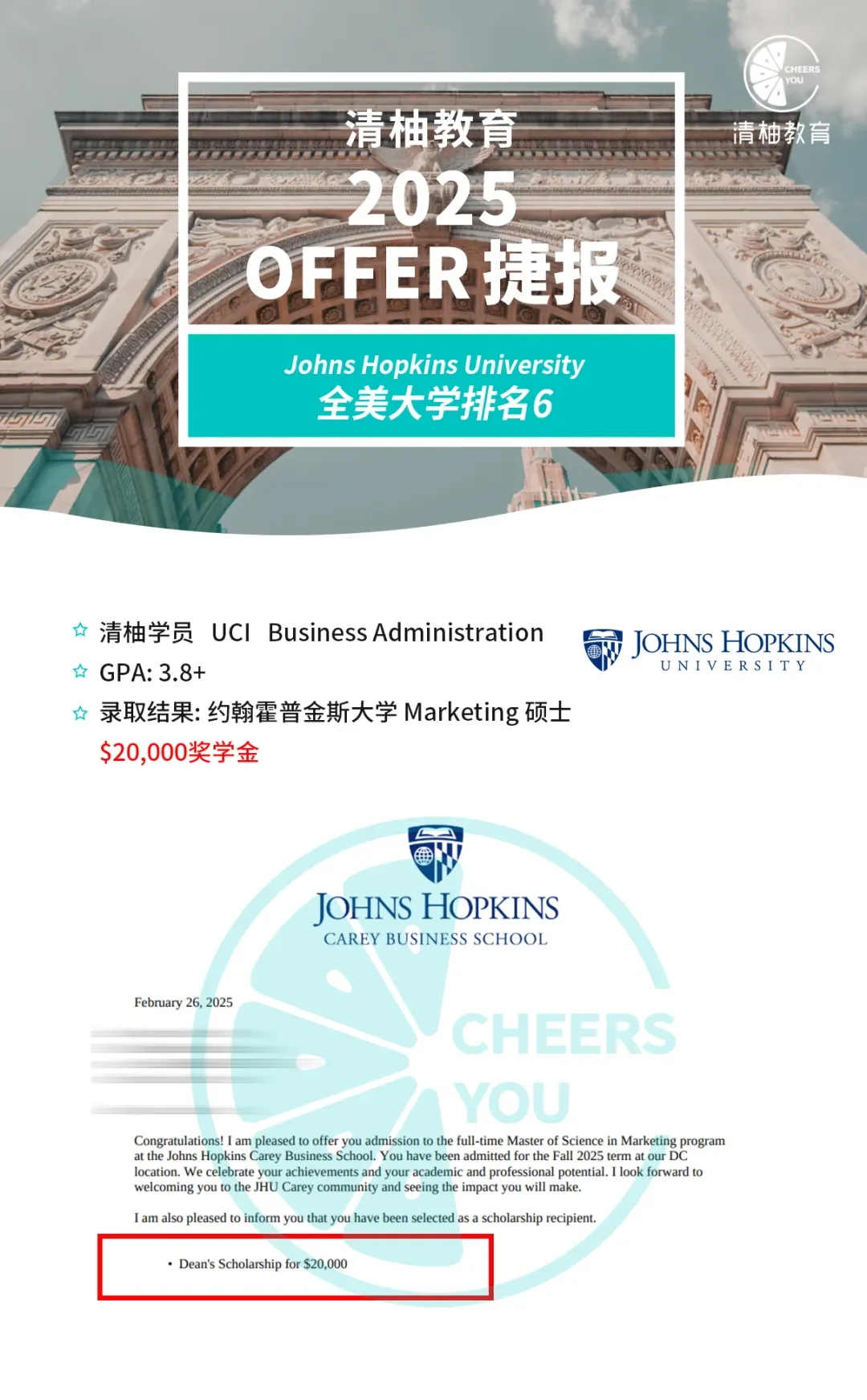 此外,她还收获了西北大学、杜克大学、约翰霍普金斯大学、南加州大学、纽约大学等名校的offer!