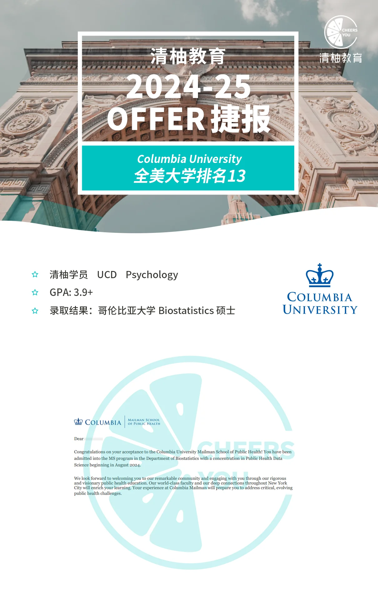 心理生统双管齐下!UCD学姐拿下哥大双录取,康奈尔万奖邀约!