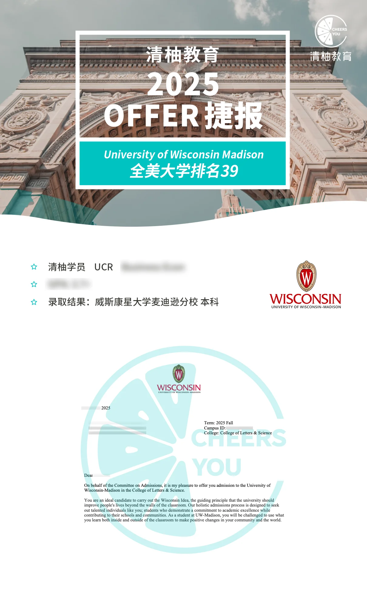 威斯康星大学麦迪逊分校College of Arts & Science本科转学录取!