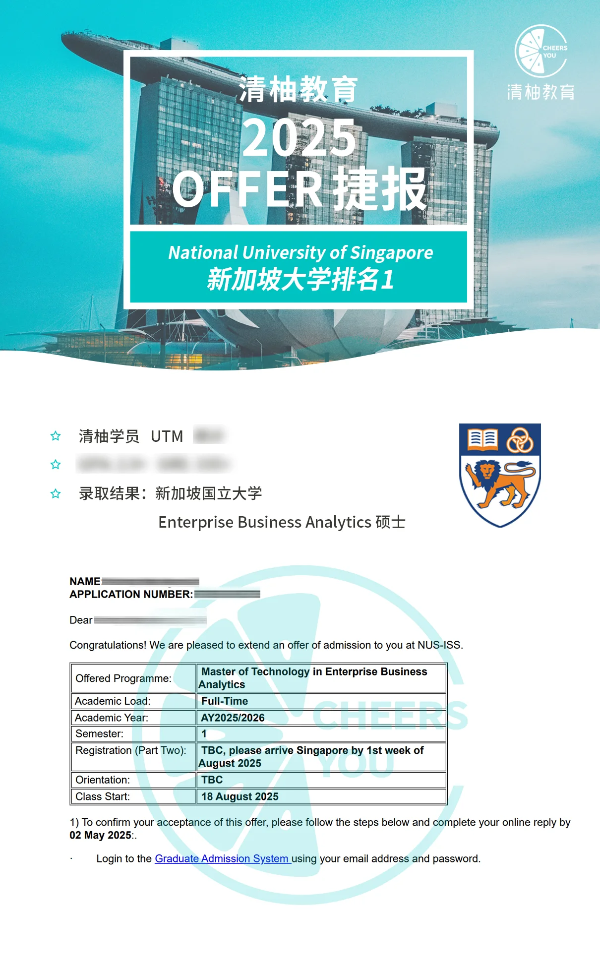 新加坡国立大学Enterprise Business Analytics硕士录取!