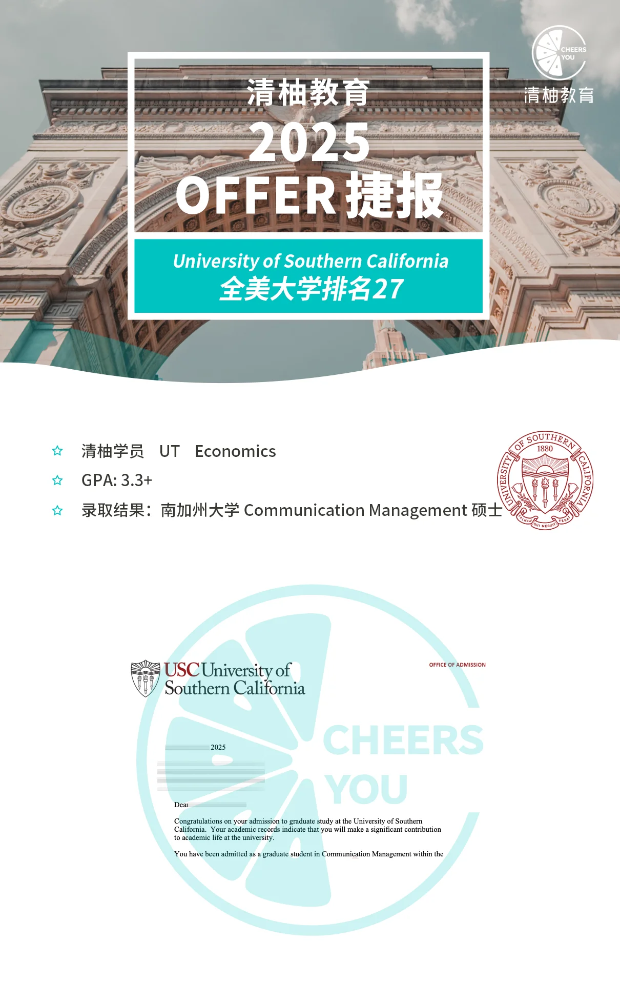 清柚老师也针对她的情况,在选课、实践、推荐信等方面都为她进行了有效的前期规划,让她受益匪浅。无时差的沟通,也让她倍感放心。最终,她决定与清柚合作,向梦校发起冲击。
