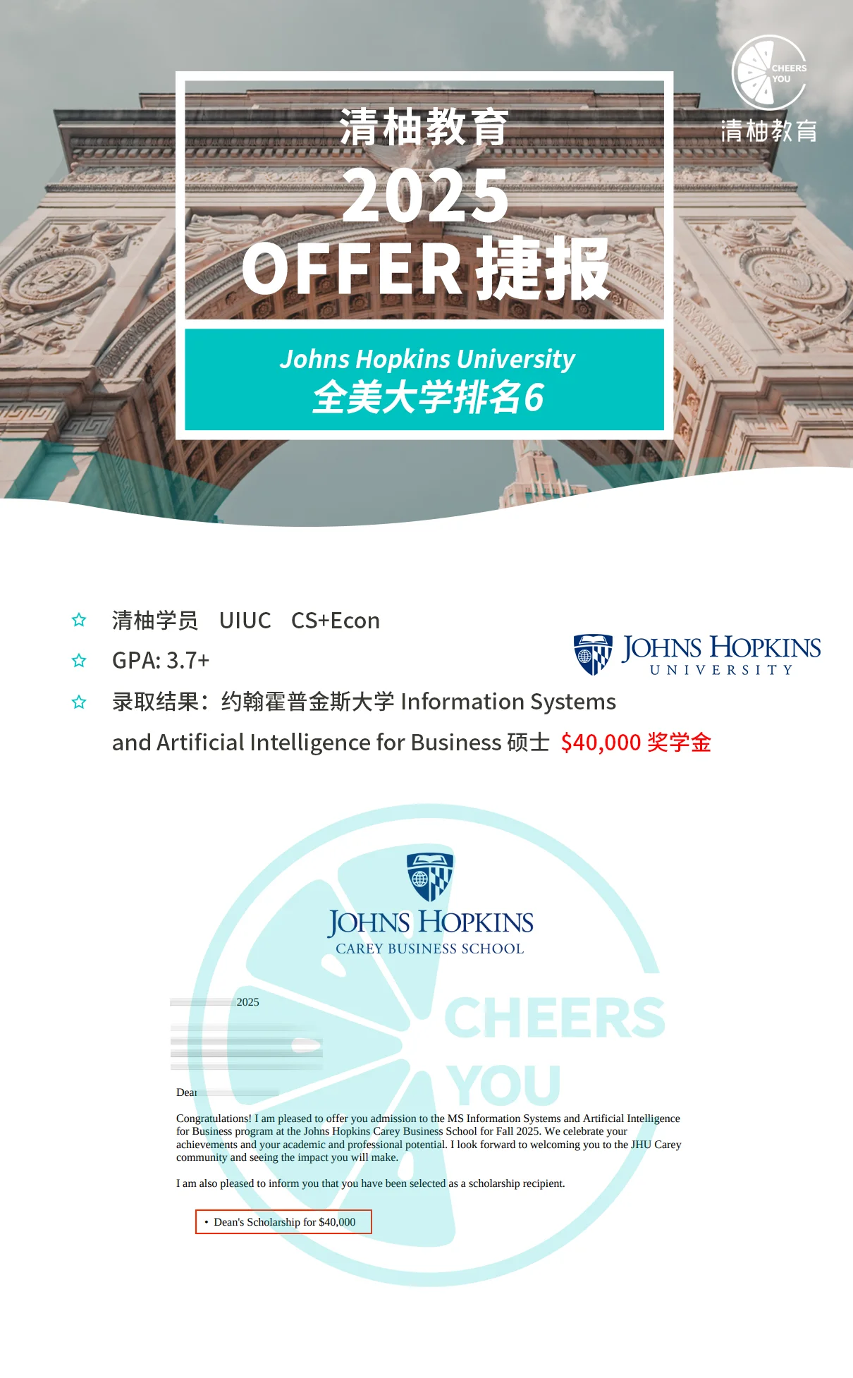 在与清柚的完美配合下,John最终被一众顶尖名校录取,包括JHU、CMU、Duke、芝大、宾大等一众名校都向他抛出橄榄枝,并给出巨额奖学金!