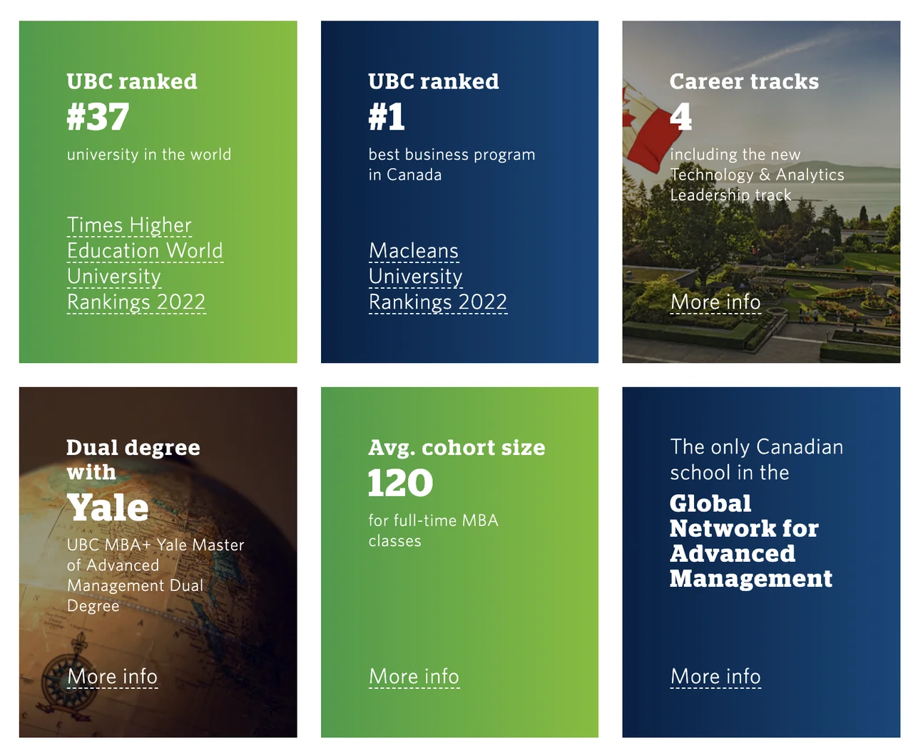 - 项目介绍:12个月的UBC商业分析硕士(MBAN)将为您提供必要的工具,涵盖全面的高级分析:从数据管理到规范性分析。它的业务导向将使您具备与战略、财务、运营、供应链、市场营销、人力资源等相关的分析能力。您将学习如何做出战略上合理的建议和数据驱动的商业决策——这正是世界各地的前沿公司所需要的。