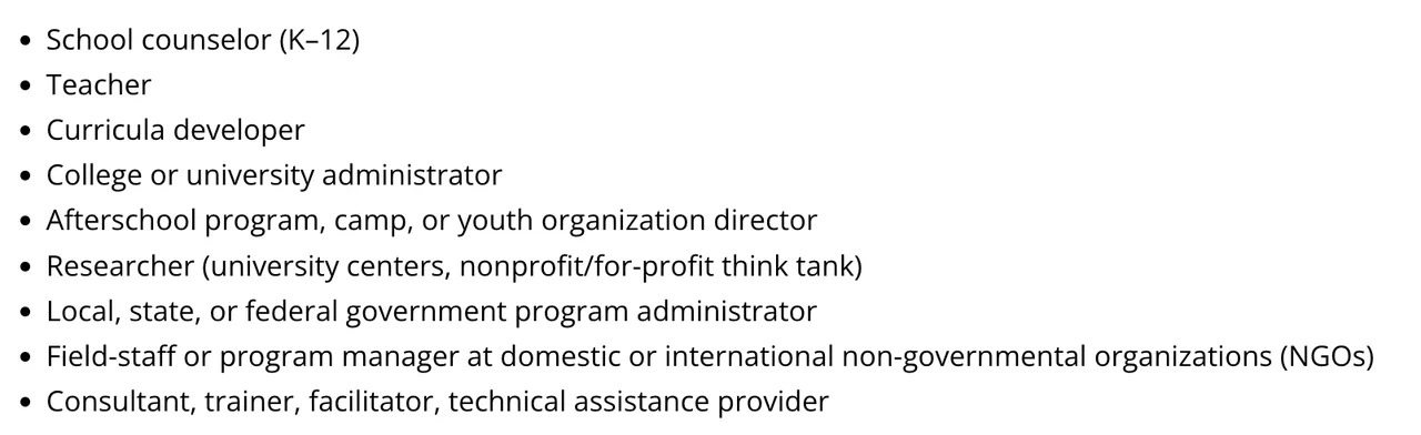 - 项目介绍:教育政策和分析(EPA)项目将帮助学生在各种组织和环境中领导和参与教育政策的制定、分析和改变。学生还将学习如何扩大有效的教育实践,并了解如何利用政策来扩大其影响范围。除了提供一套共享的知识、技能和专业能力外,EPA还可以让学生专注于特定的背景和兴趣,为他们在美国以及世界各地的发展中国家的政策制定、研究、分析和组织领导中发挥作用做好准备。