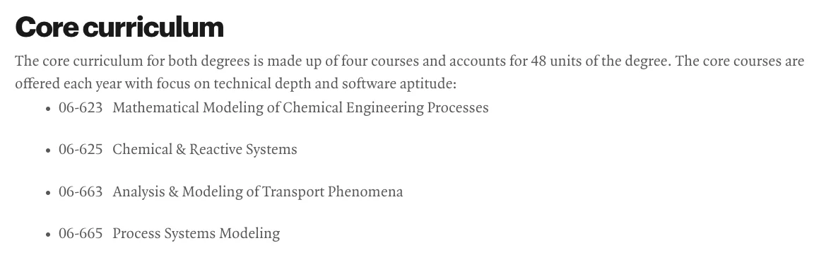 卡耐基梅隆大学总共设置了四个不同的化工硕士研究生项目: