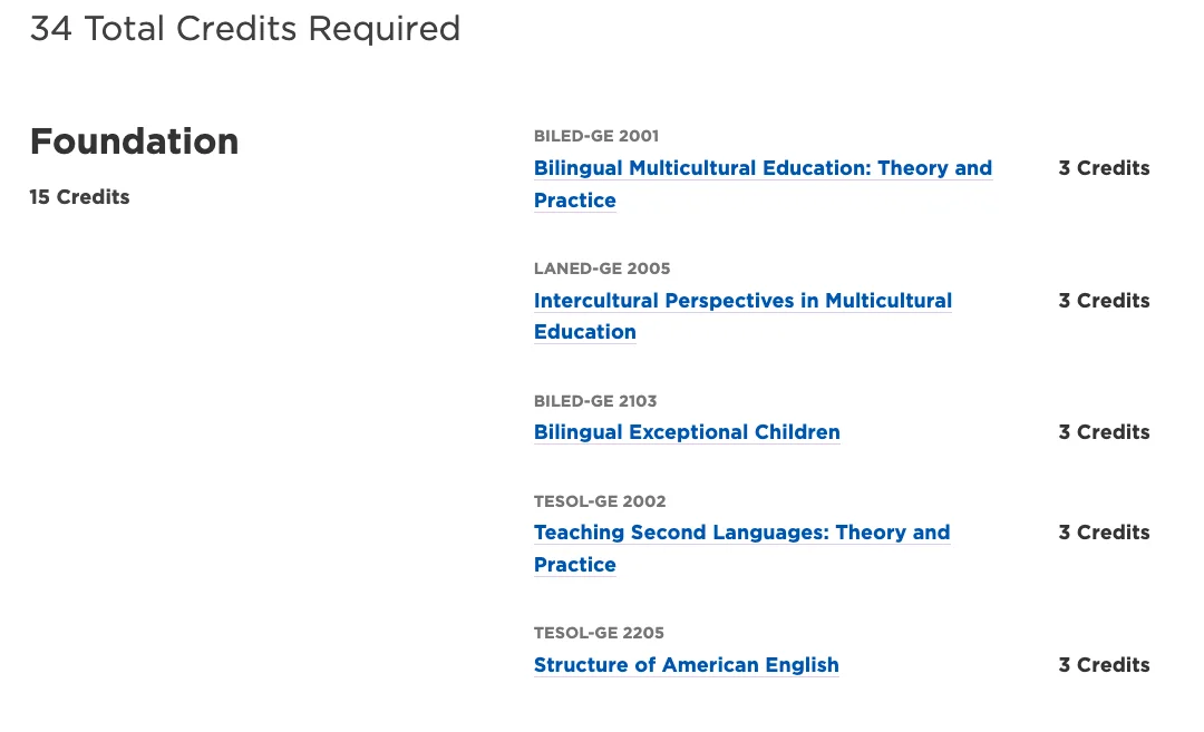 哥伦比亚大学教育学院作为世界顶级的教育学院之一,也开设了双语教育这一专业,项目不提供教师证书。该项目要求修习33个学分,很适合想要在双语教育领域深耕的同学。无论是了解相关政策,还是进行双语教育研究,又或者是从事双语教学,该项目都准备了大量细分方向的课程供学生选择。