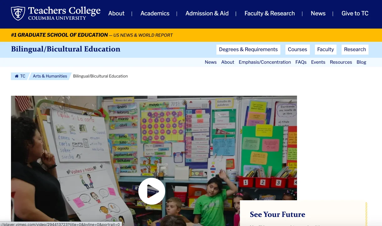 官网链接:https://www.tc.columbia.edu/arts-and-humanities/bilingual-bicultural-education/