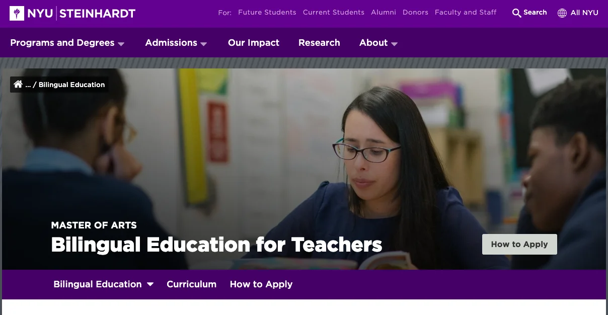 官网链接:https://steinhardt.nyu.edu/programs/bilingual-education