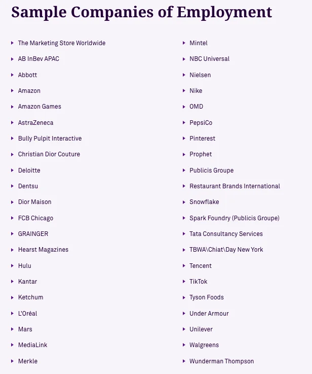 这个项目为期一年,其课程通过将最新的研究带入课题,为学生提供批判性的消费者行为分析以及真实商业上的挑战,培养学生发展成为有创新精神的市场战略者。