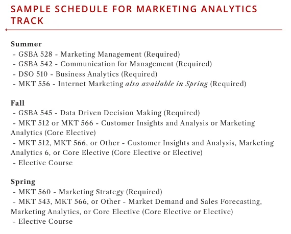 南加大商学院的市场营销项目给学生提供了丰富的课程选择,学生们可以根据自己的兴趣和需求,选择相应的细分方向进行修读,比如可以选择偏重市场分析(analytics)的课程,或者更注重学习消费者行为(consumer insight)方面的课程。