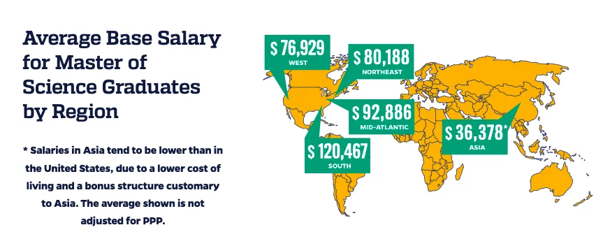 再来看看JHU的毕业生就业薪资统计,当然具体薪资也是跟就业城市的消费水平等因素息息相关的。