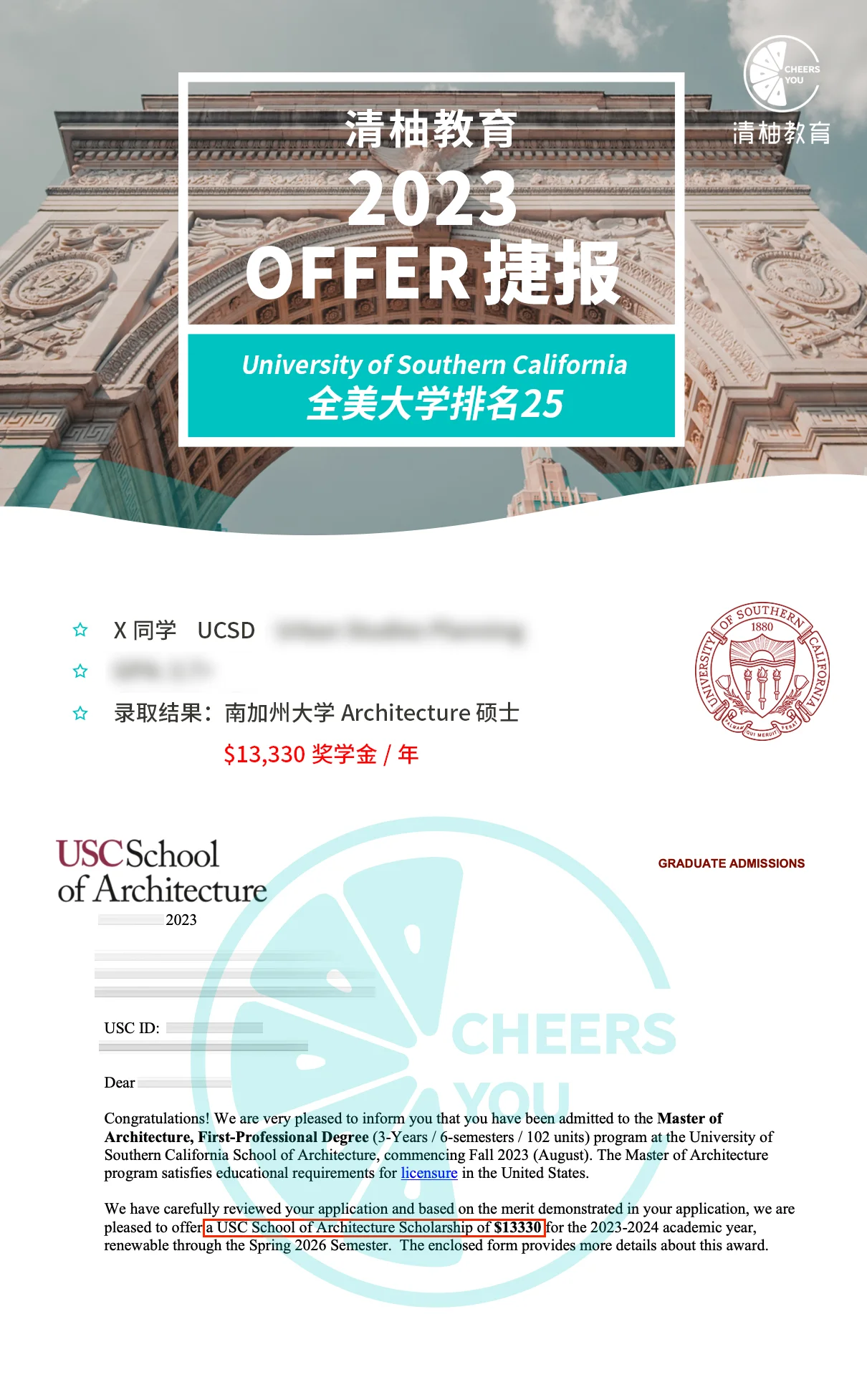 南加州大学Architecture硕士录取!$13,330奖学金/年!
