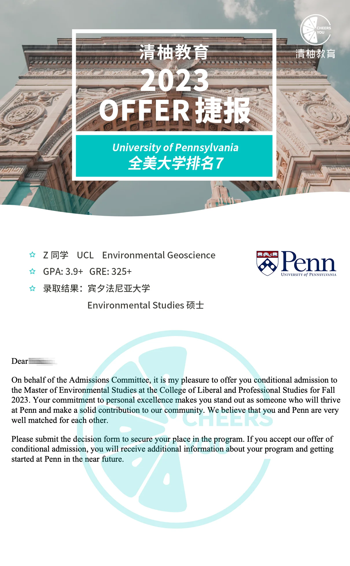 像宾大的项目原本需要提交托福成绩,清柚老师指导她跟学校有效argue自己多年以来的英语学习与旧托福成绩的优秀情况,最终成功waive了语言考试。