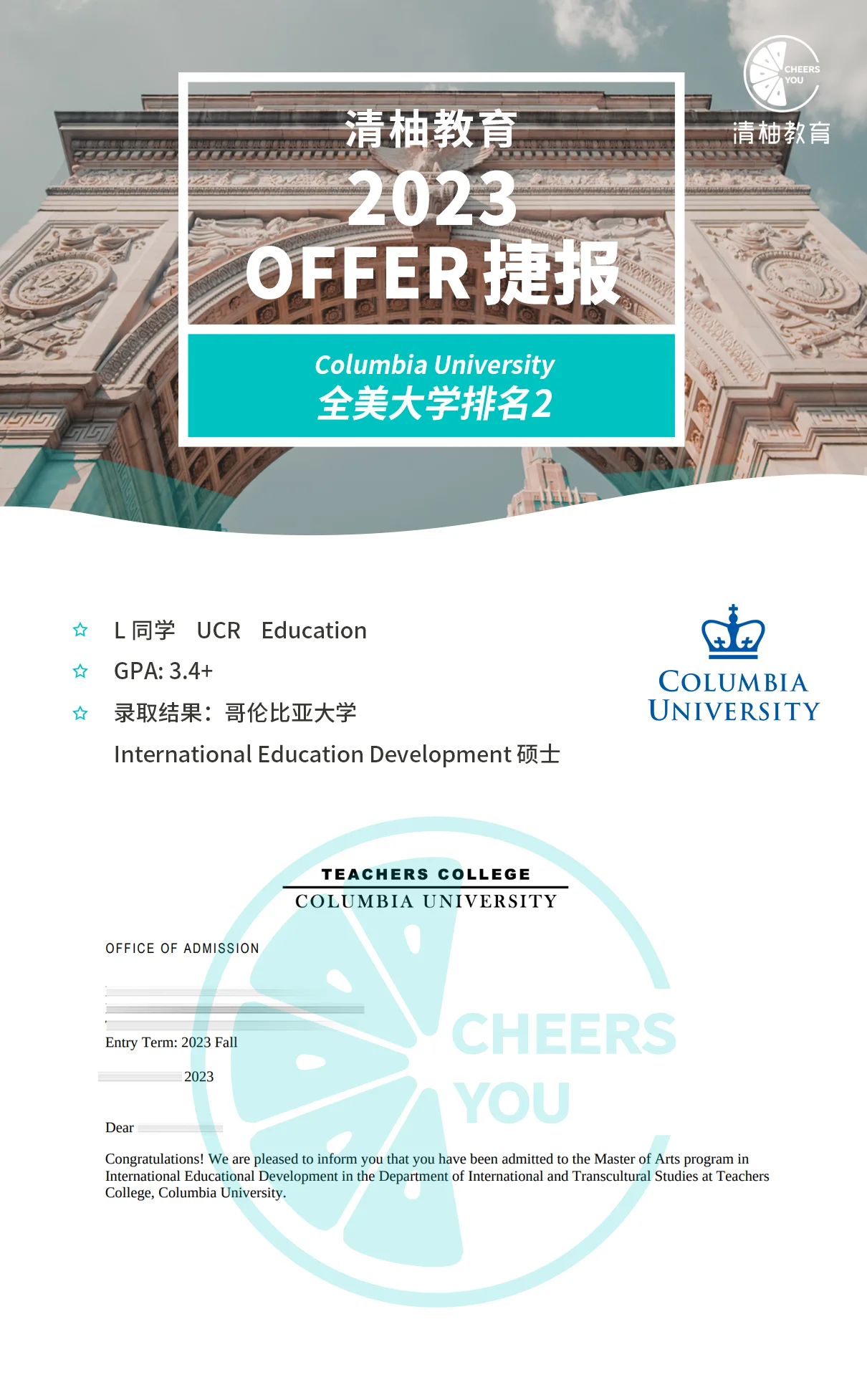做教育筑梦人!UCR学长学费减免,offer齐收,哥大/范德堡/乔治城/纽大疯狂争抢!