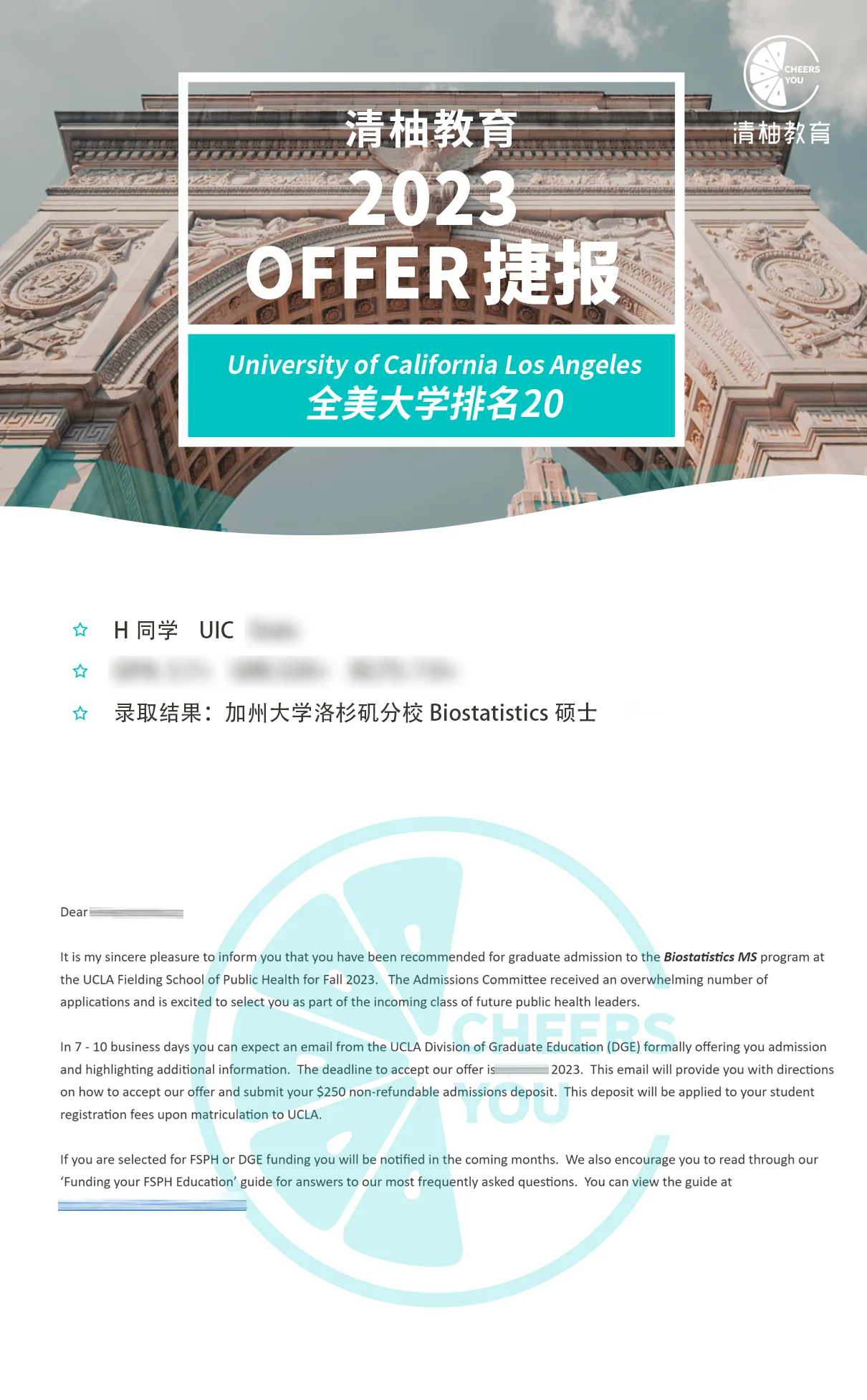 加州大学洛杉矶分校Biostatistics硕士录取!