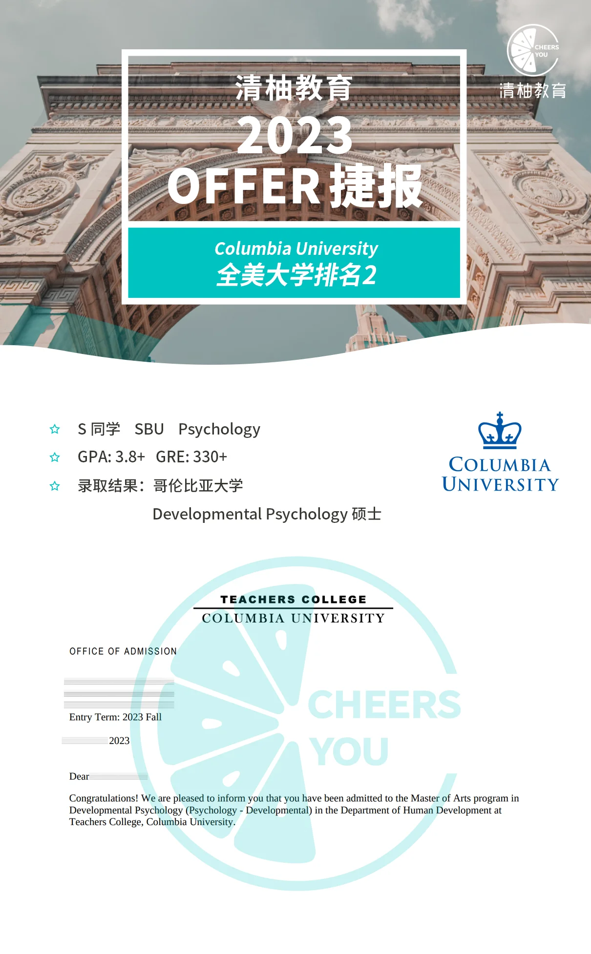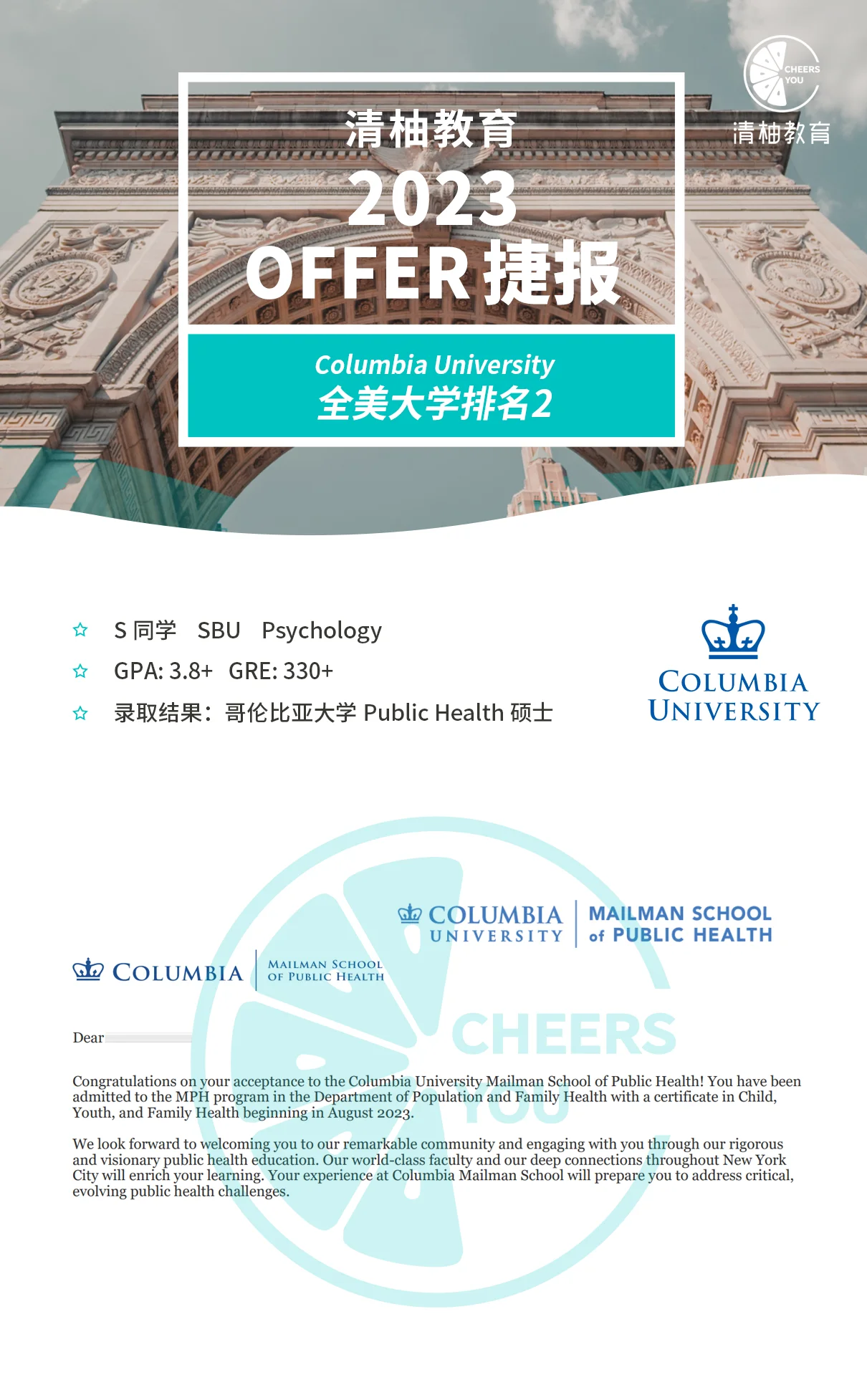 12月晚申请冲刺!她极限补充经历,喜提哥大双黄蛋offer,连下MPH心理人类发展录取!