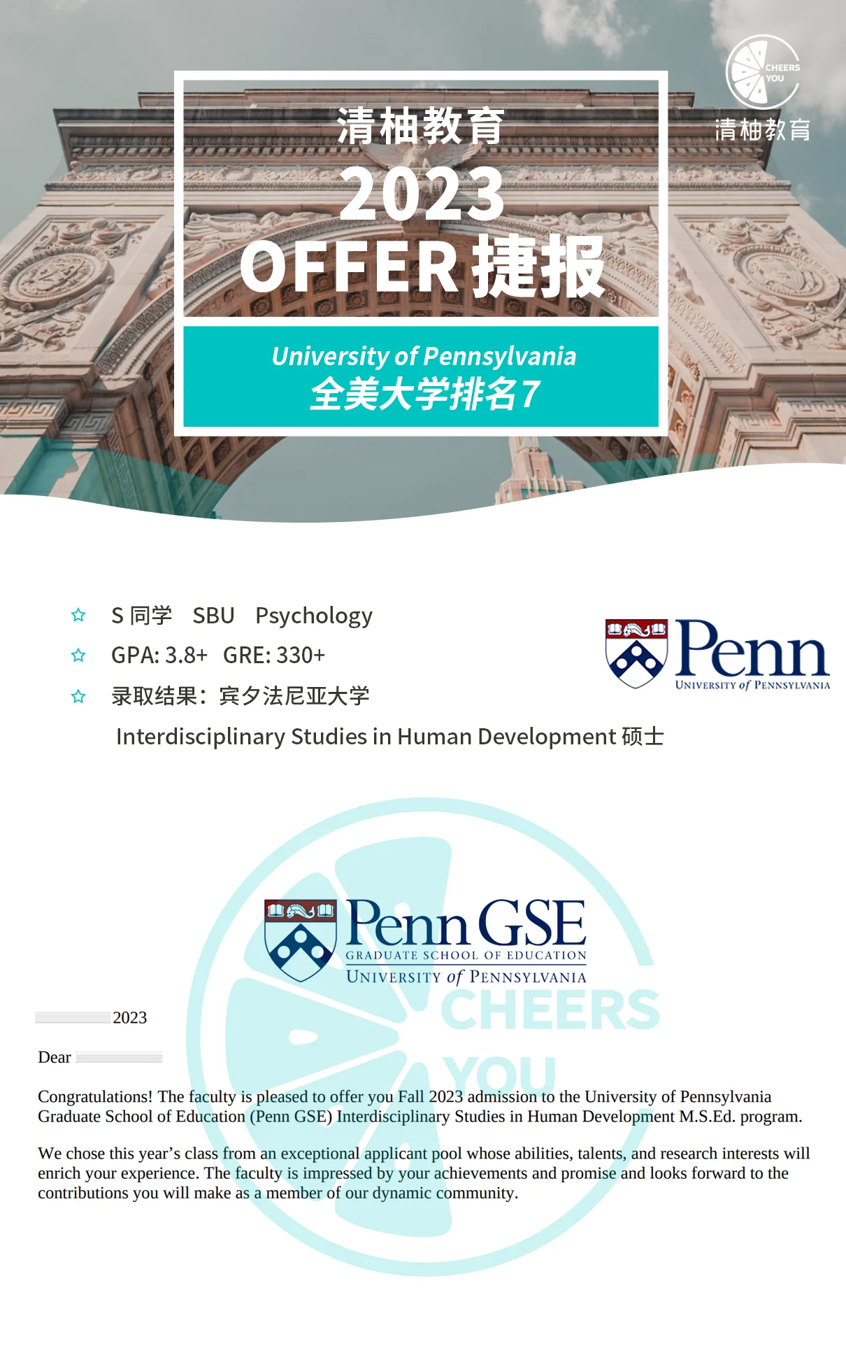 最后,清柚祝福Sandy取得了圆满的申请成果,也衷心希望她能继续实现自己的梦想!