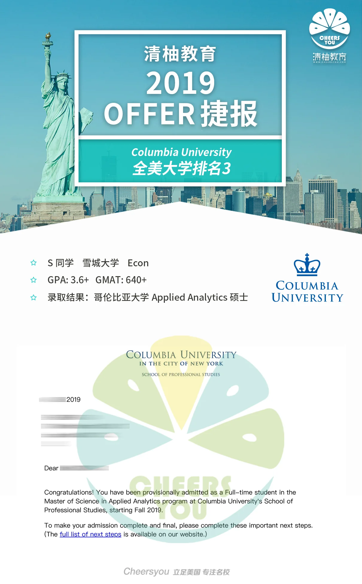 录取:哥伦比亚大学Applied Analytics硕士、纽约大学等