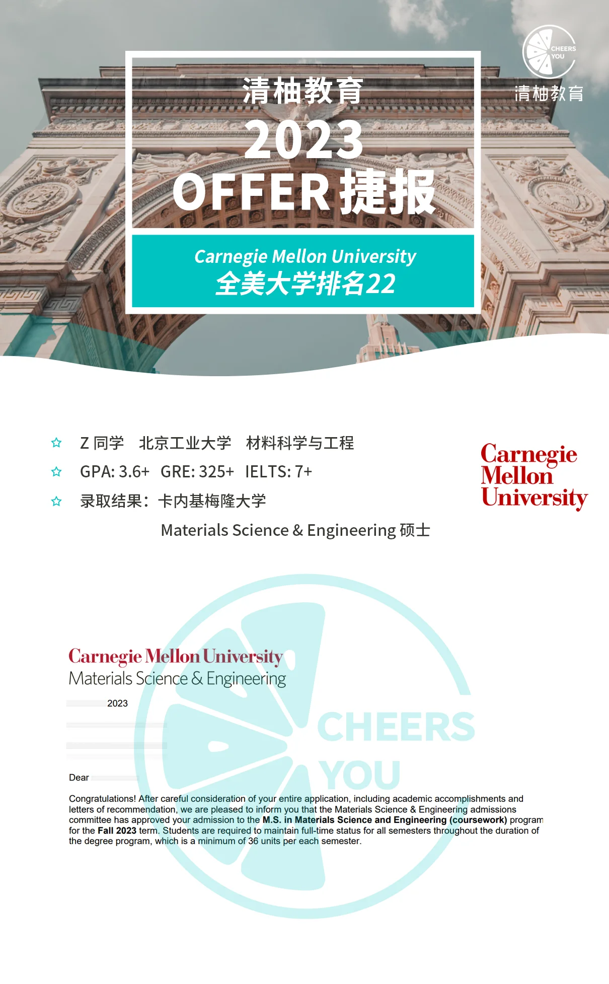 让Jeff万万没想到的是,第一封offer就来自理工科“女神校”卡内基梅隆大学。