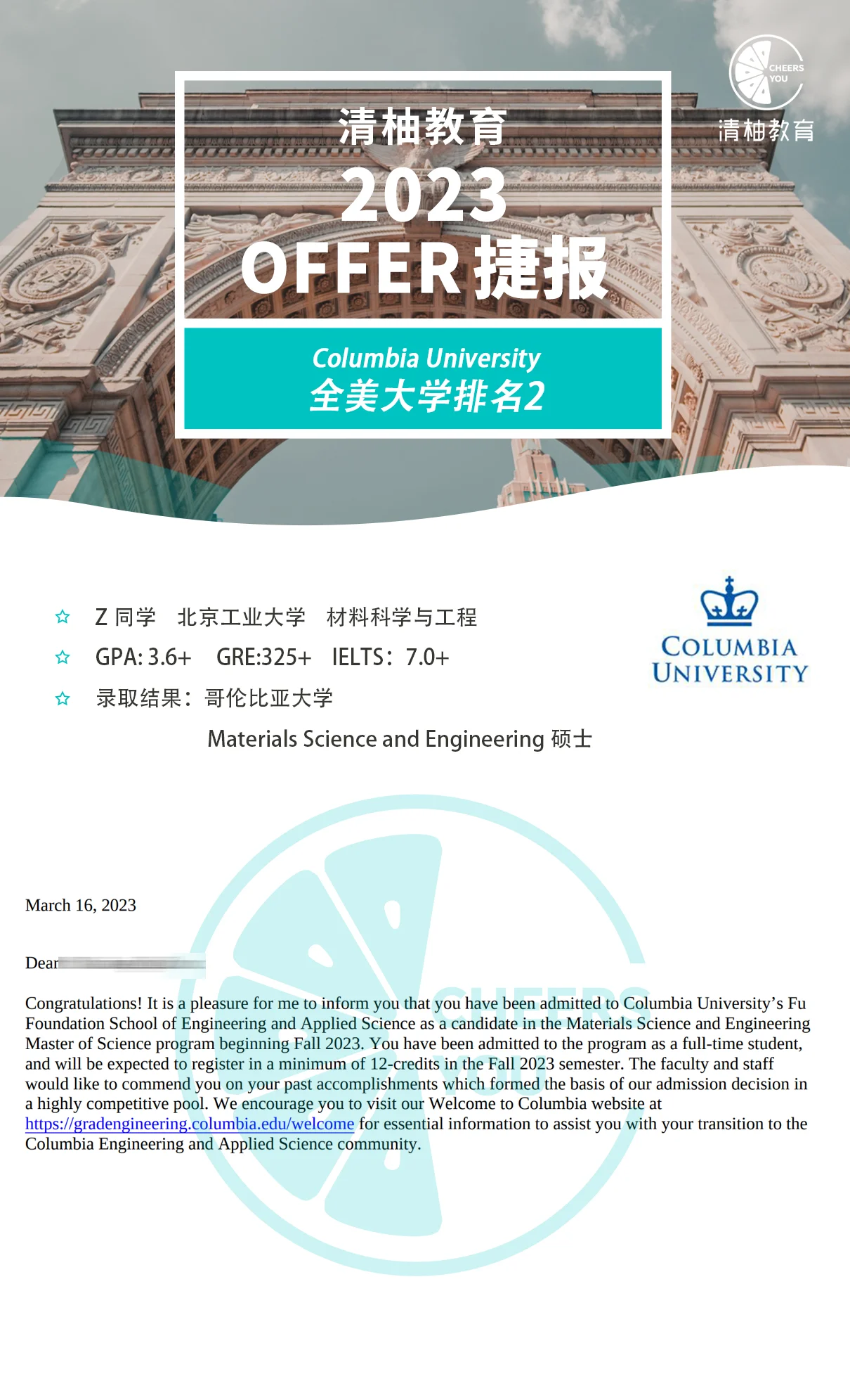 紧随其后的,是他梦校之一的哥伦比亚大学。看到录取结果的那一刻,Jeff甚至觉得这个申请季可以提前结束了。