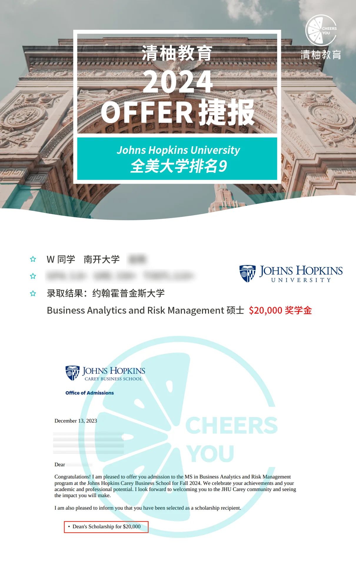 约翰霍普金斯大学Business Analytics and Risk Management硕士录取!$20,000奖学金!