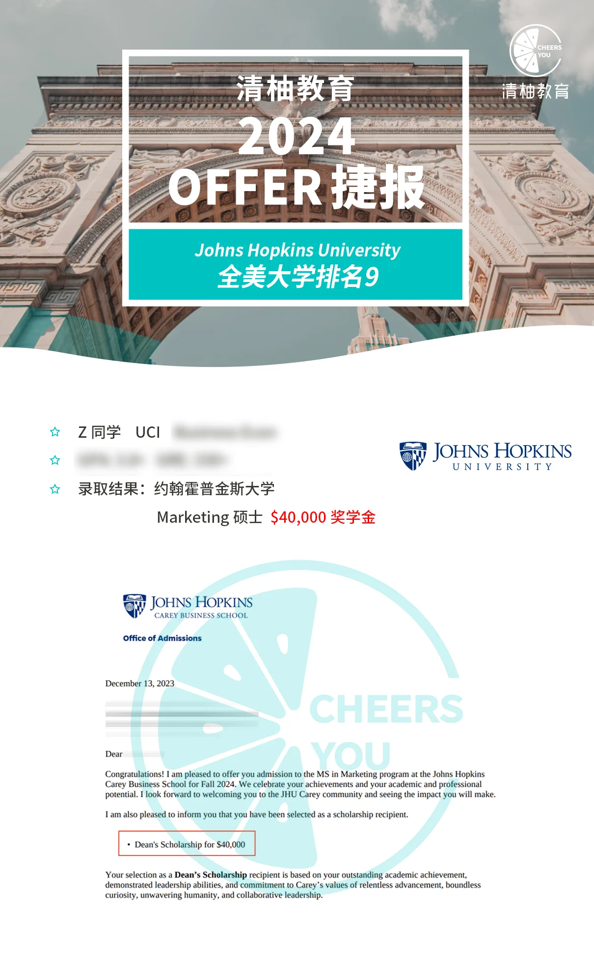 约翰霍普金斯大学Marketing硕士录取!$40,000奖学金!
