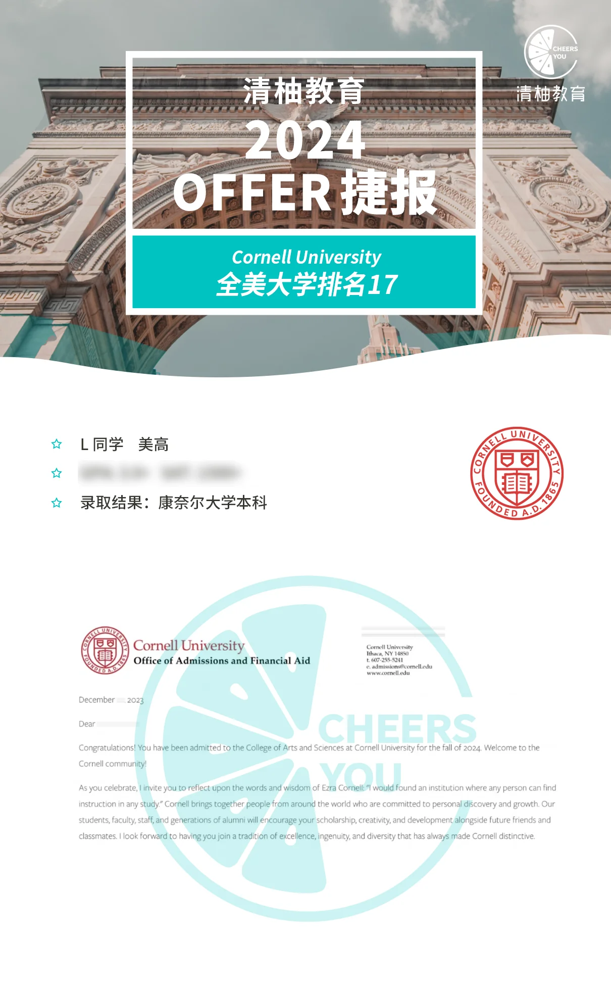 康奈尔大学College of Arts and Sciences本科ED录取!
