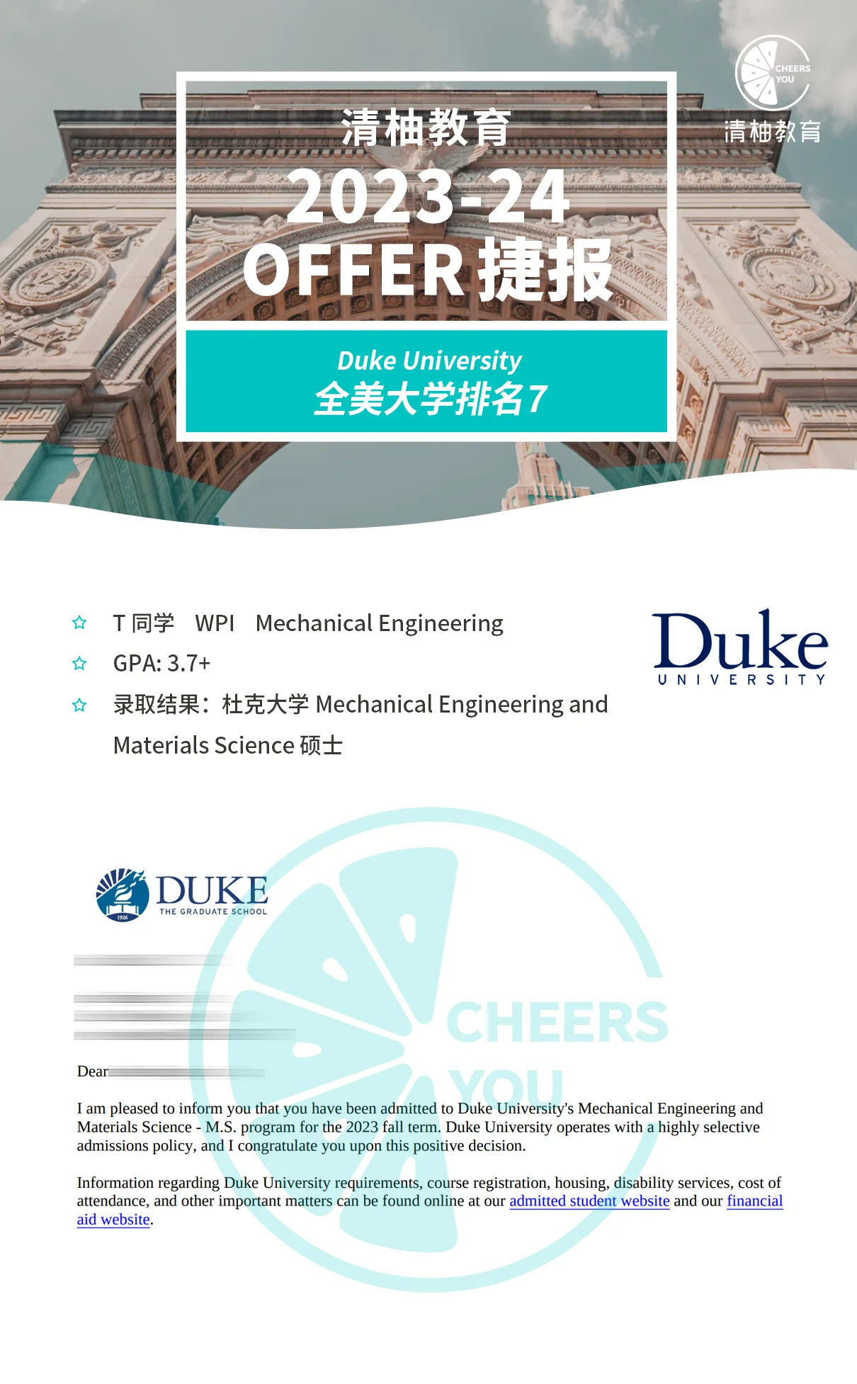 在清柚老师的分析鼓舞下,Alex逐渐理清了思路,自信心也随之回归。他最终锁定包括杜克、UCB、纽大、华大圣路易斯在内的Top名校。这些大学不仅机械工程专业排名靠前,也更符合他未来的职业规划。
