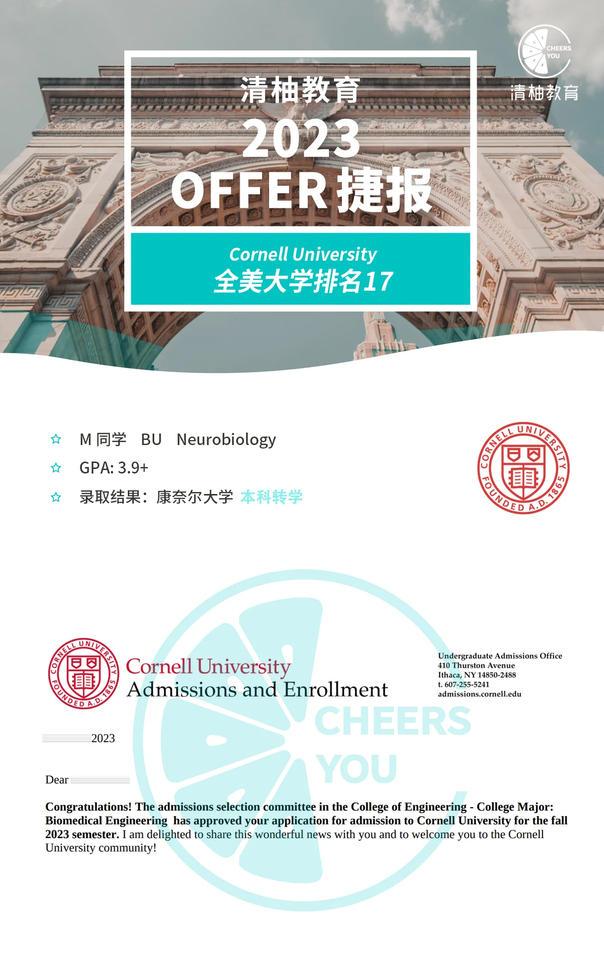 BU本科转学康奈尔,完成曲线救国三连跳!她提早规划,直冲藤校!
