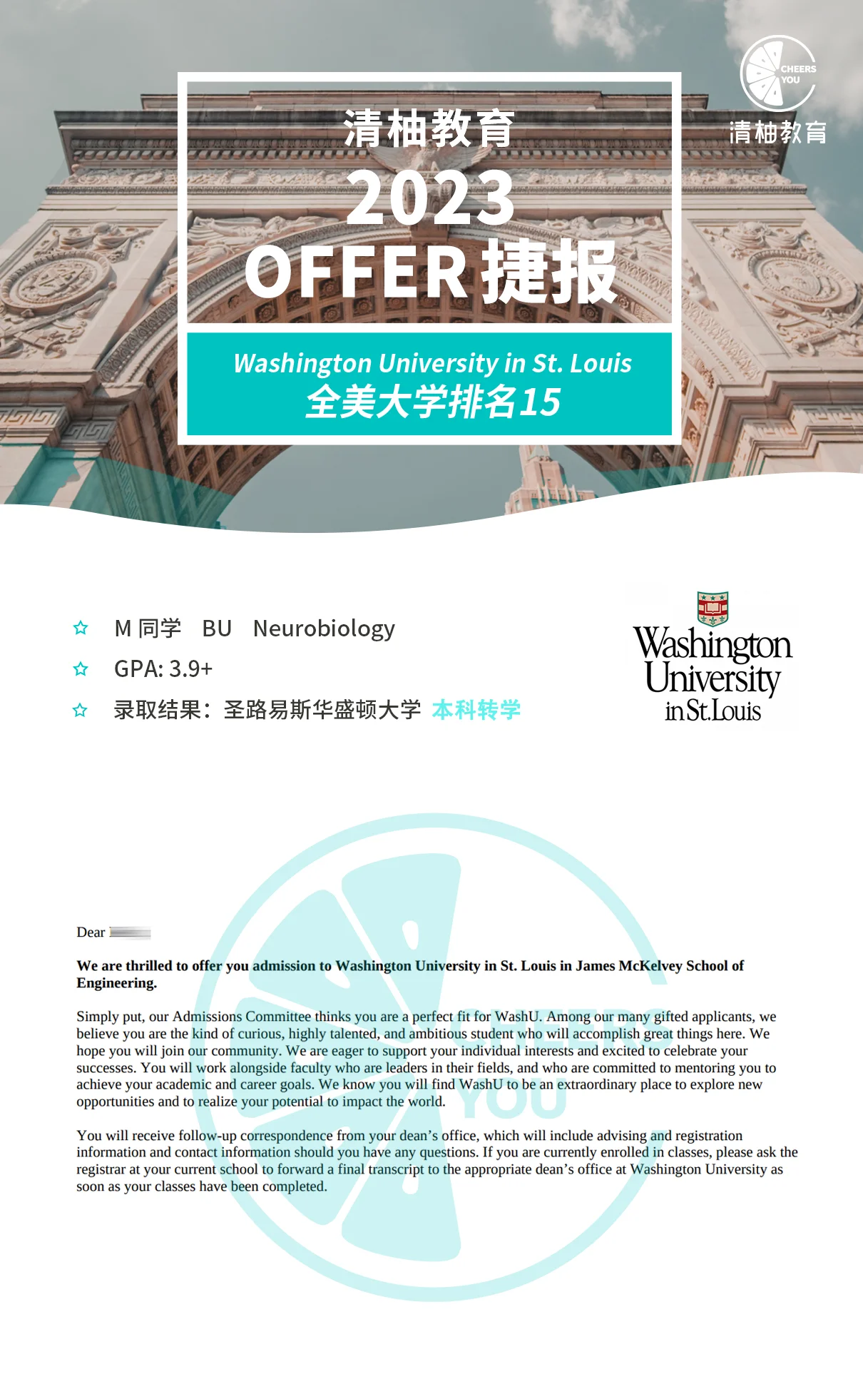 然而令人意想不到的是,康奈尔竟然是最先抛来橄榄枝的!随后Jessica还陆续收到了圣路易斯华盛顿大学、弗吉尼亚大学等Top名校的offer!
