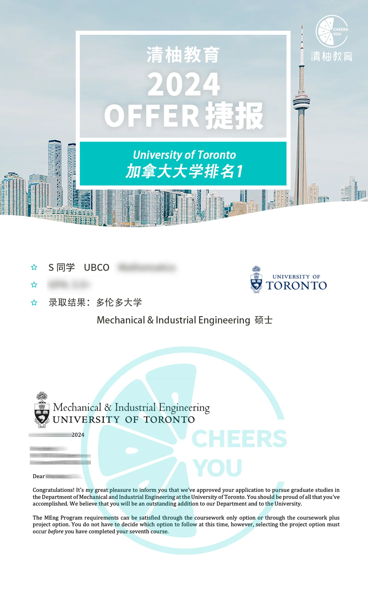 多伦多大学Mechanical & Industrial Engineering硕士录取!