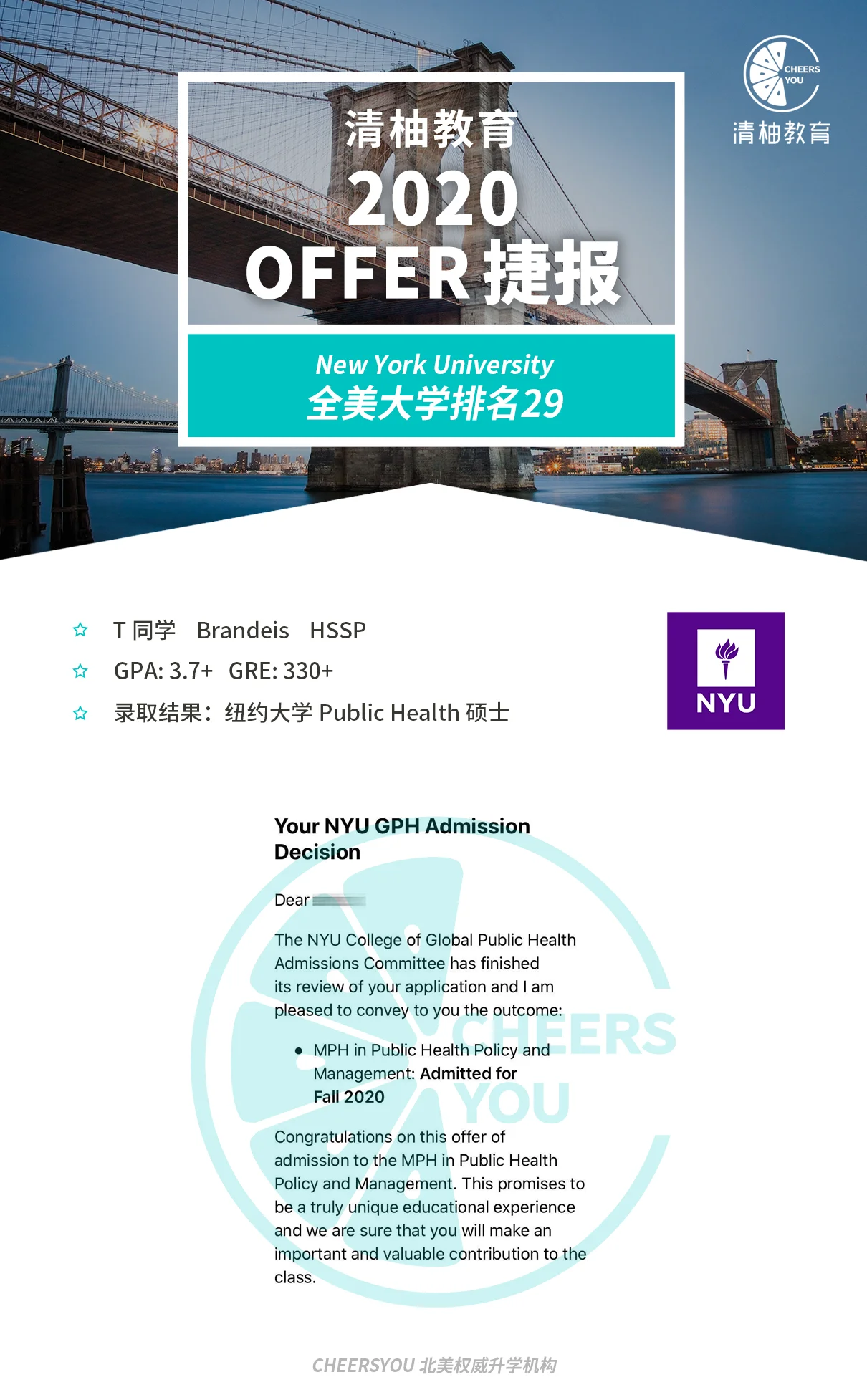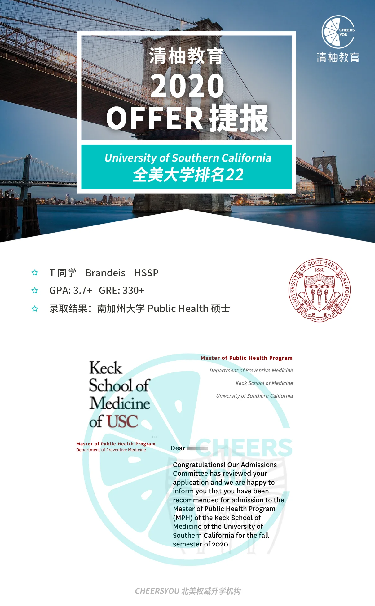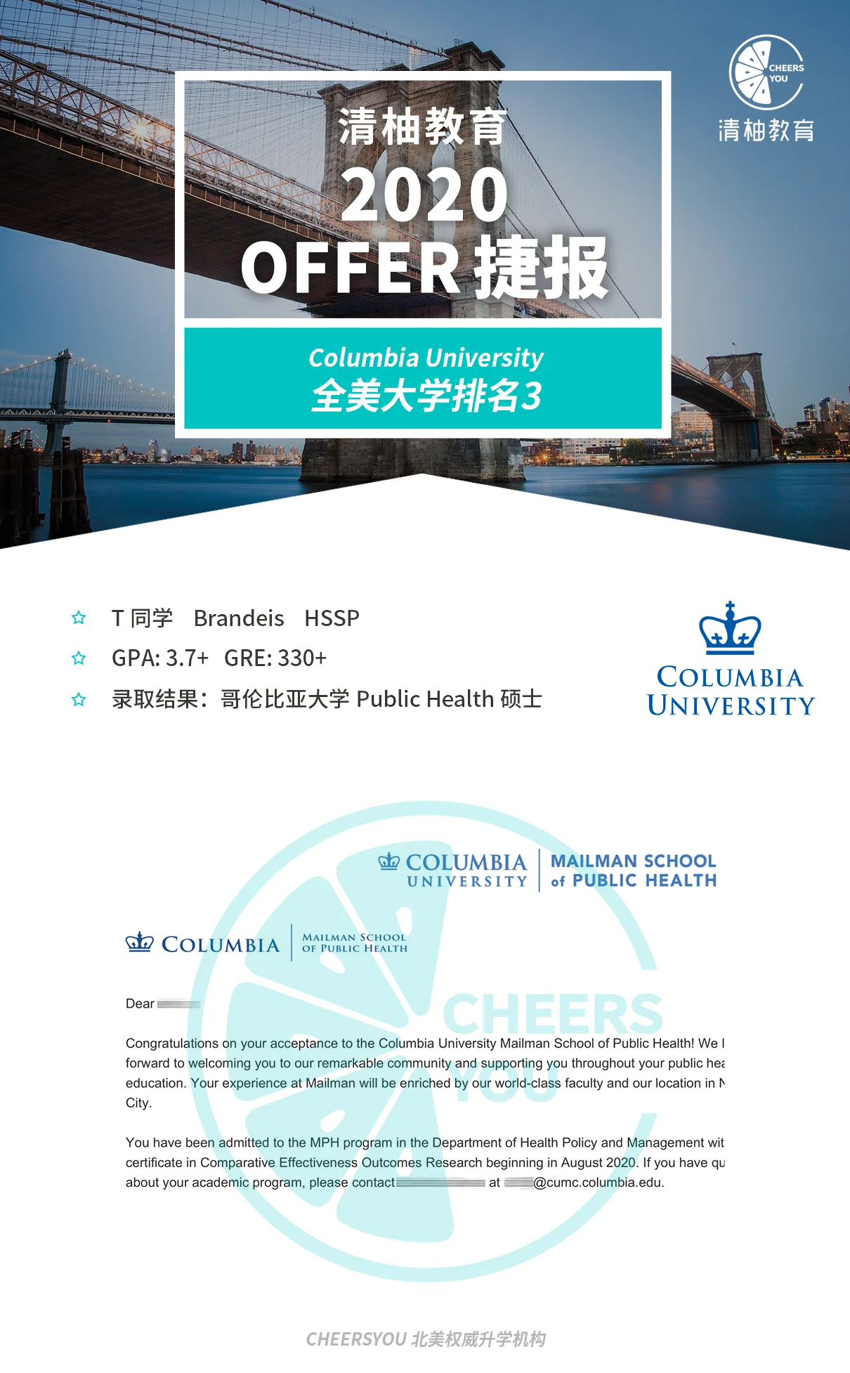 录取:约翰霍普金斯大学MPH,哥伦比亚大学MPH,布朗大学MPH,芝加哥大学MPP,纽约大学MPH,南加州大学MPH等