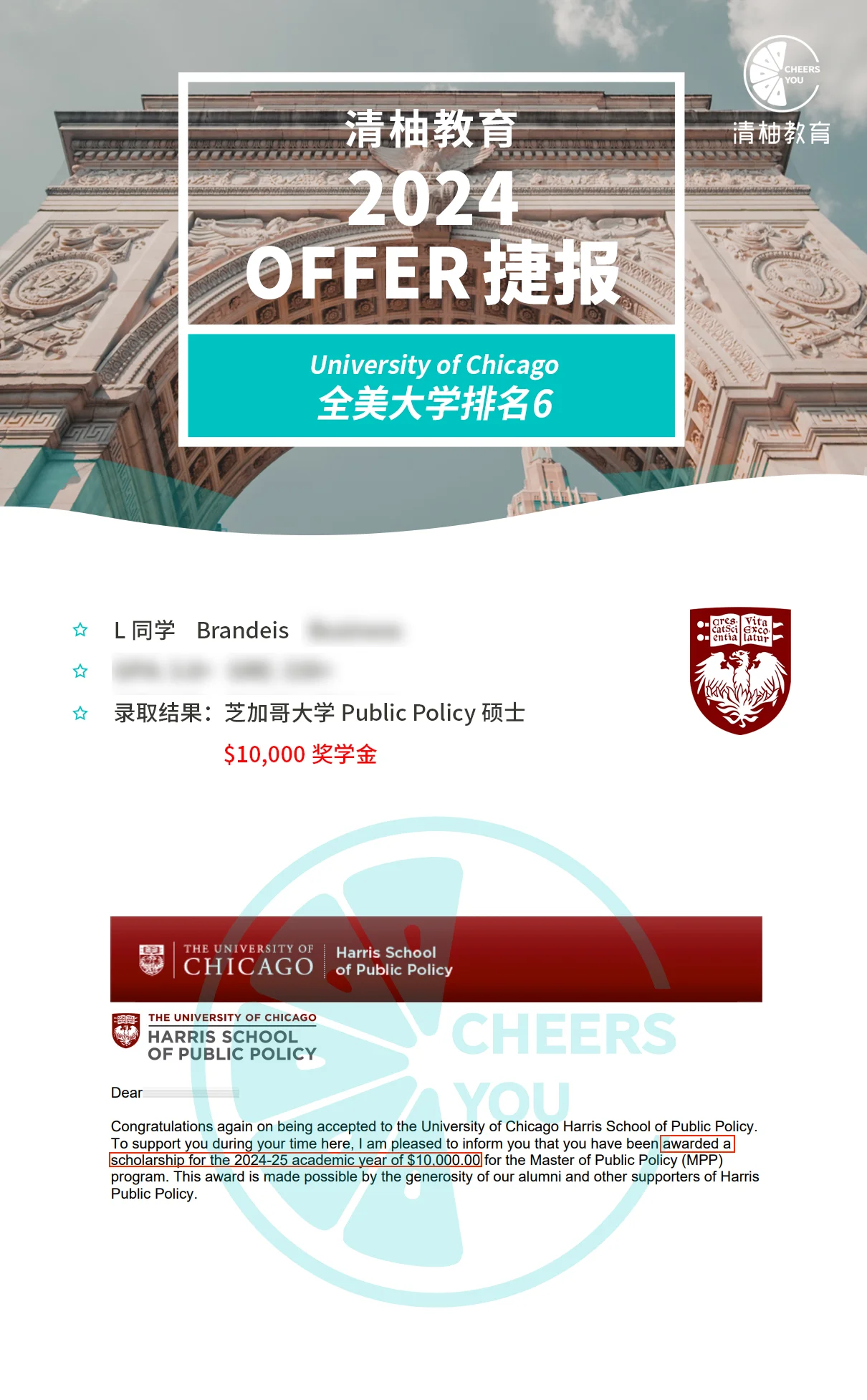 芝加哥大学Public Policy硕士录取!$10,000奖学金!