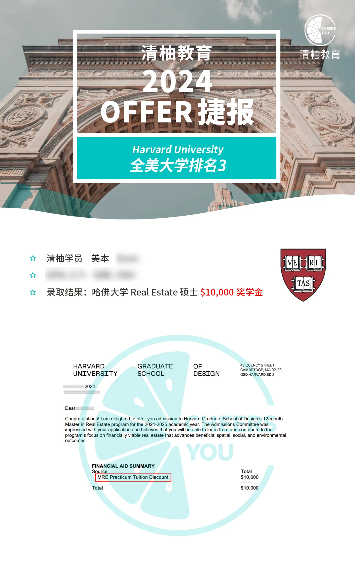 哈佛大学Real Estate硕士录取!$10,000奖学金!