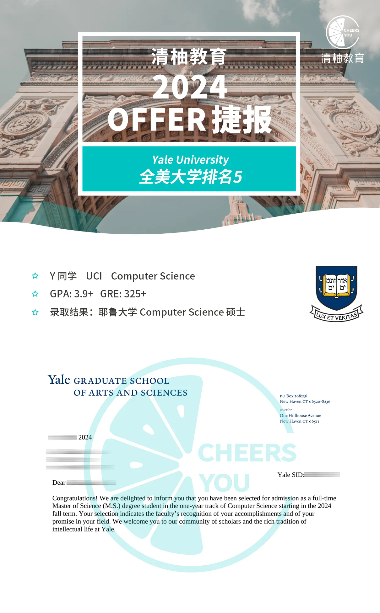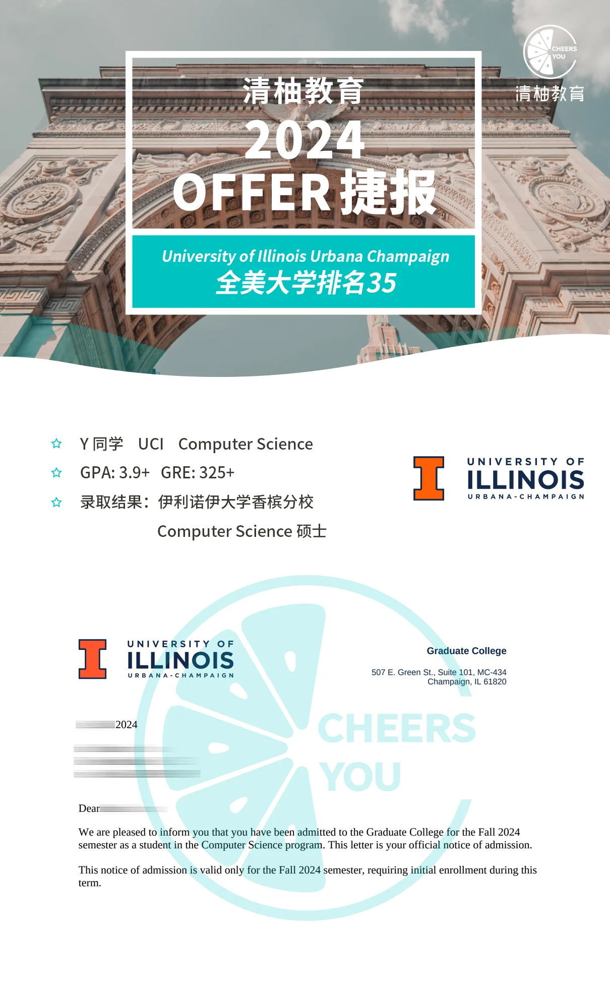最终,Alan和清柚一同等到了捷报。老牌的藤校耶鲁、哥大、康奈尔等都向他抛来了橄榄枝,他也收到了CS强校CMU、UIUC的入学邀请。