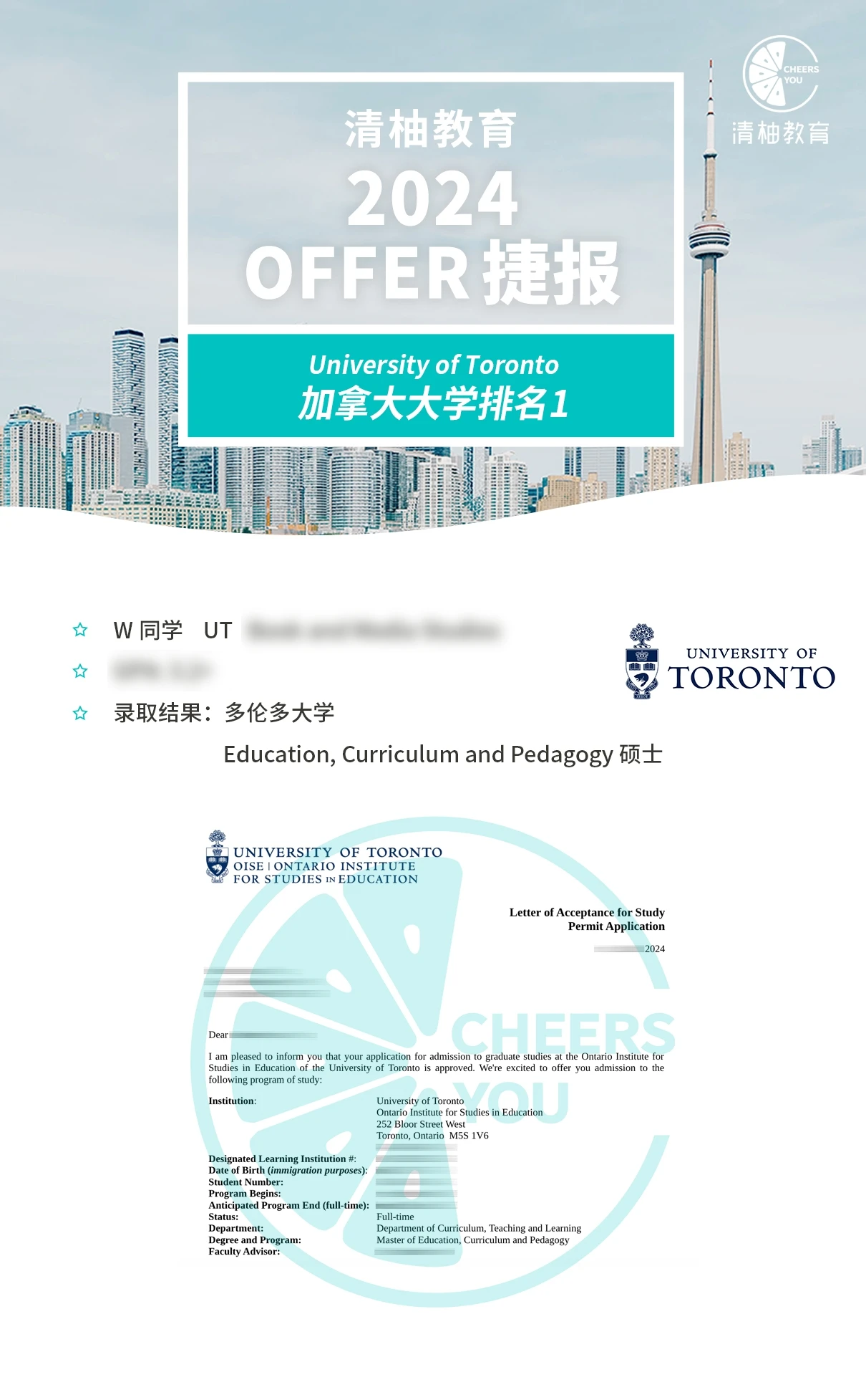 多伦多大学Education, Curriculum and Pedagogy硕士录取!