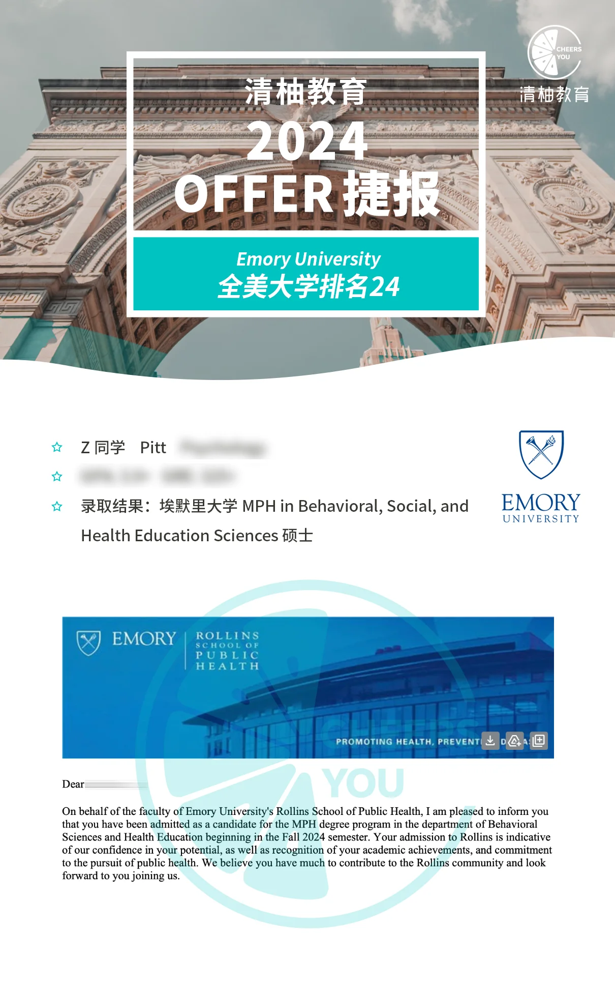 埃默里大学MPH in Behavioral, Social, and Health Education Sciences硕士录取!
