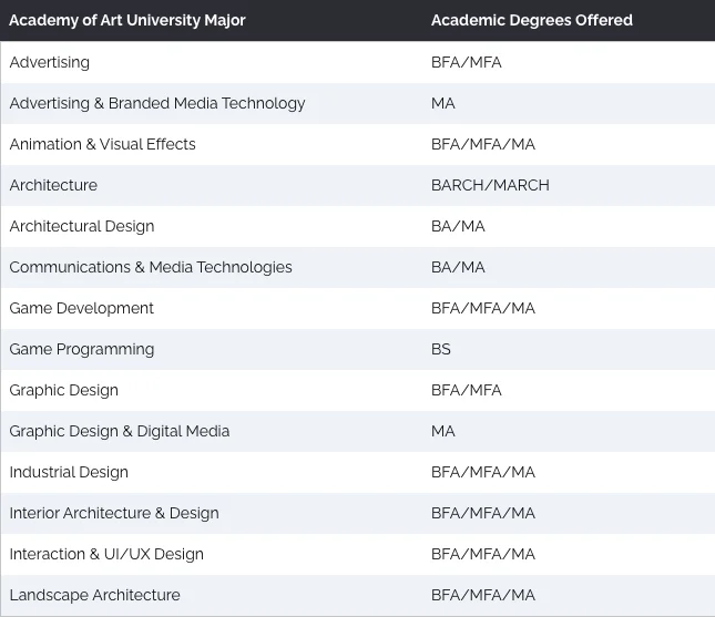 提供36个学分的课程,涵盖教学与学习的历史、艺术和科学,另外还有24个学分的工作室艺术和设计课程。这个项目旨在为那些工作室背景有限的学生设计,希望通过Academy of Art University工作室课程来加强自己的视觉艺术作品集。