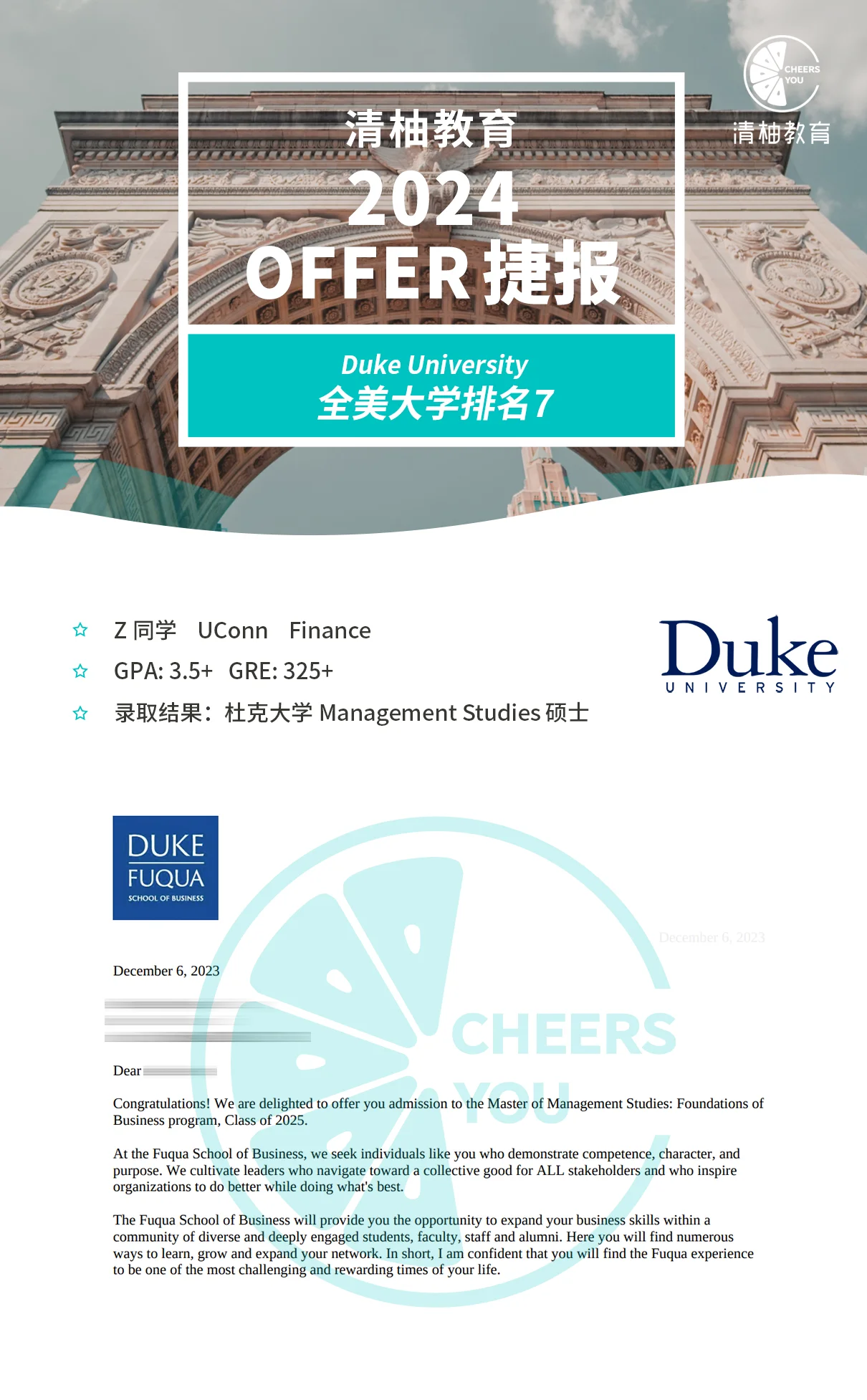 金融BA录取大丰收!UConn学长拿下杜克/JHU/南加大/WashU!