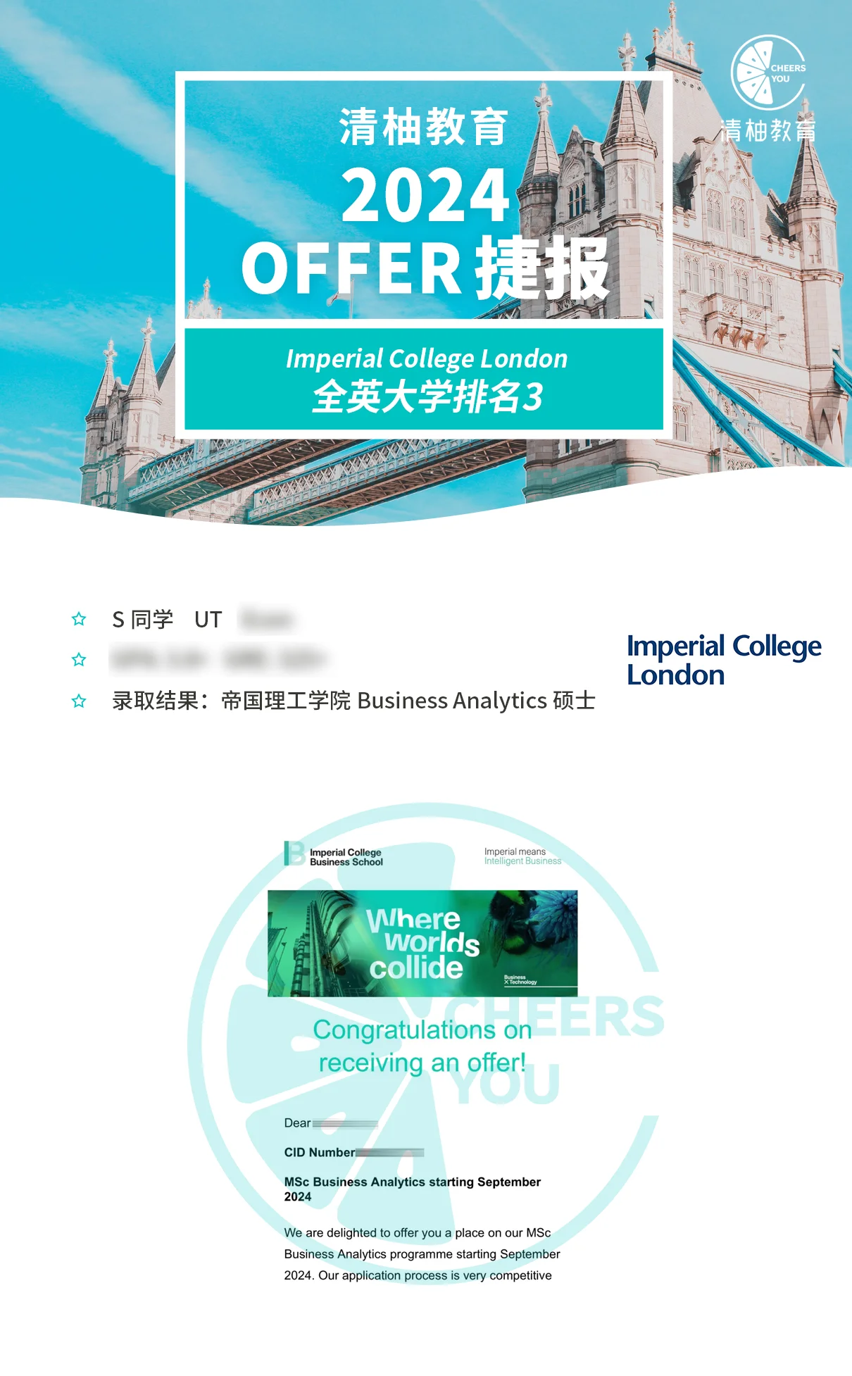 帝国理工学院Business Analytics硕士录取!