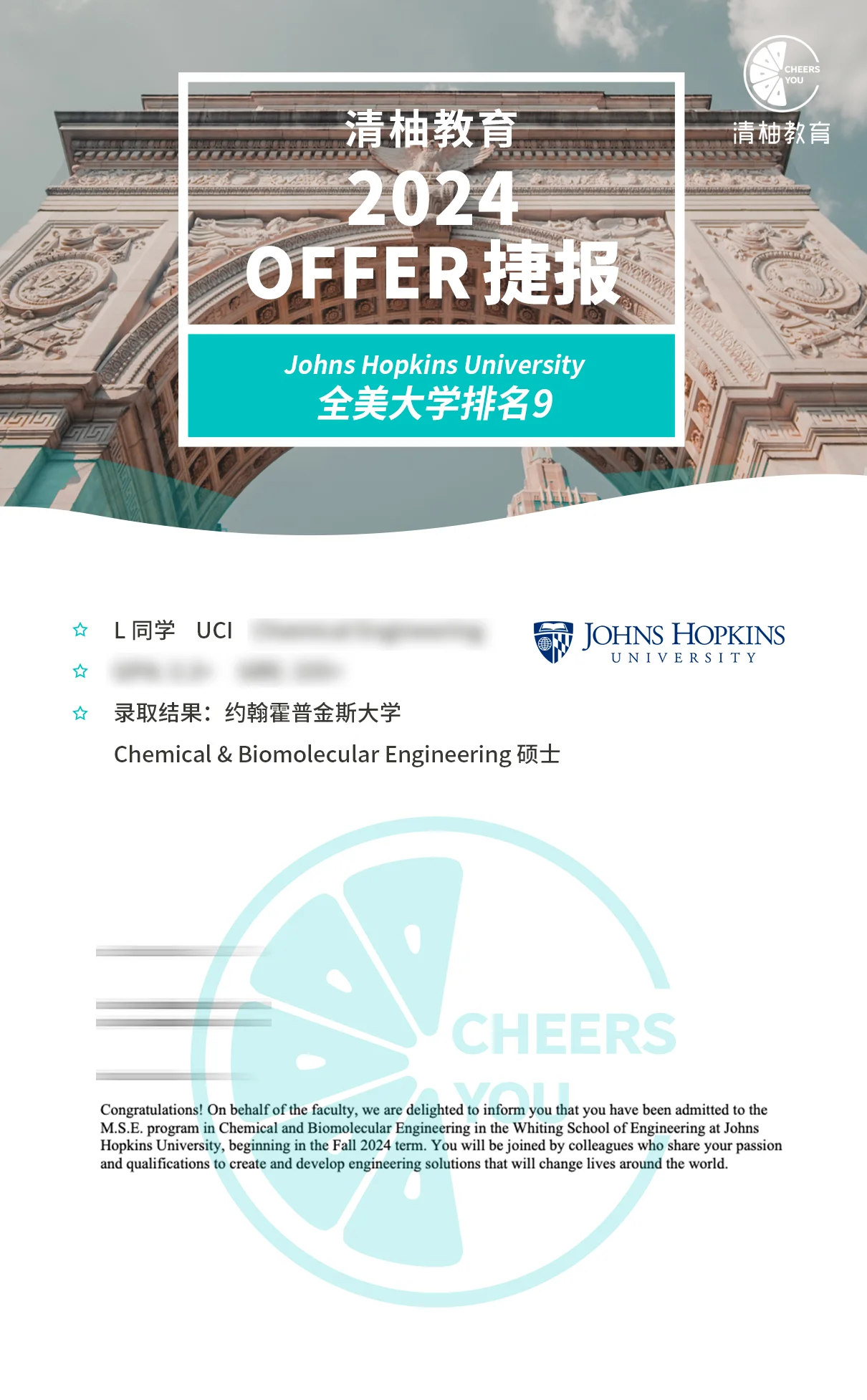 约翰霍普金斯大学Chemical & Biomolecular Engineering硕士录取!