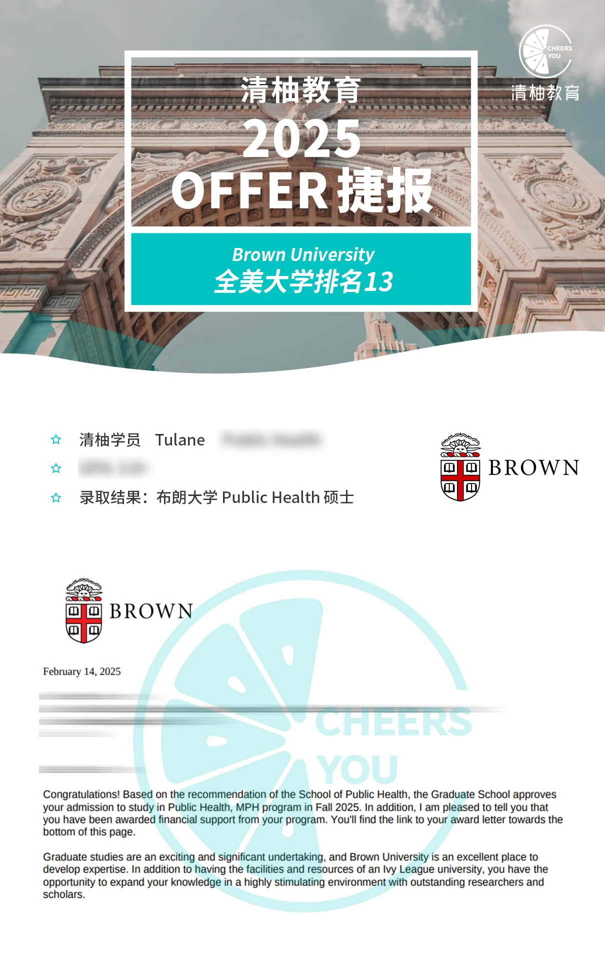 布朗大学Public Health硕士录取!
