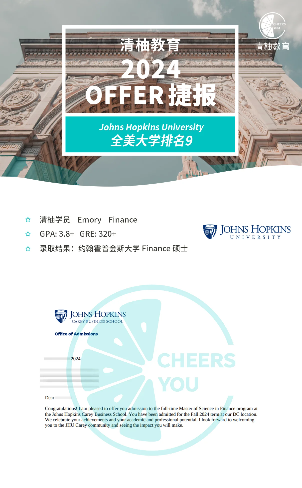 最终,在Jessica和清柚老师的共同努力下,她的申请季圆满结束,拿到包括哥大、JHU、康奈尔等顶尖名校的录取。这也是对她能力的认可,祝愿她在未来的发展中一切顺利。