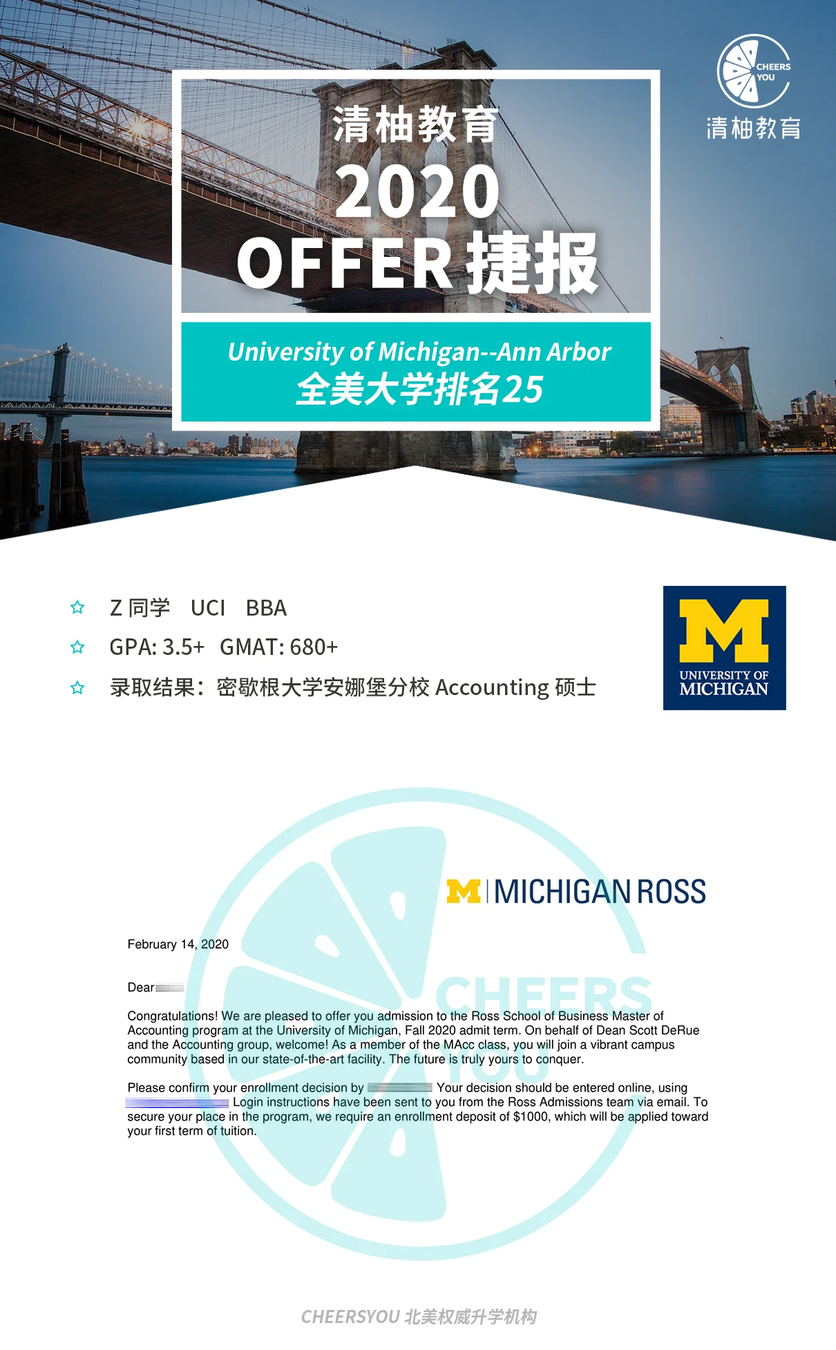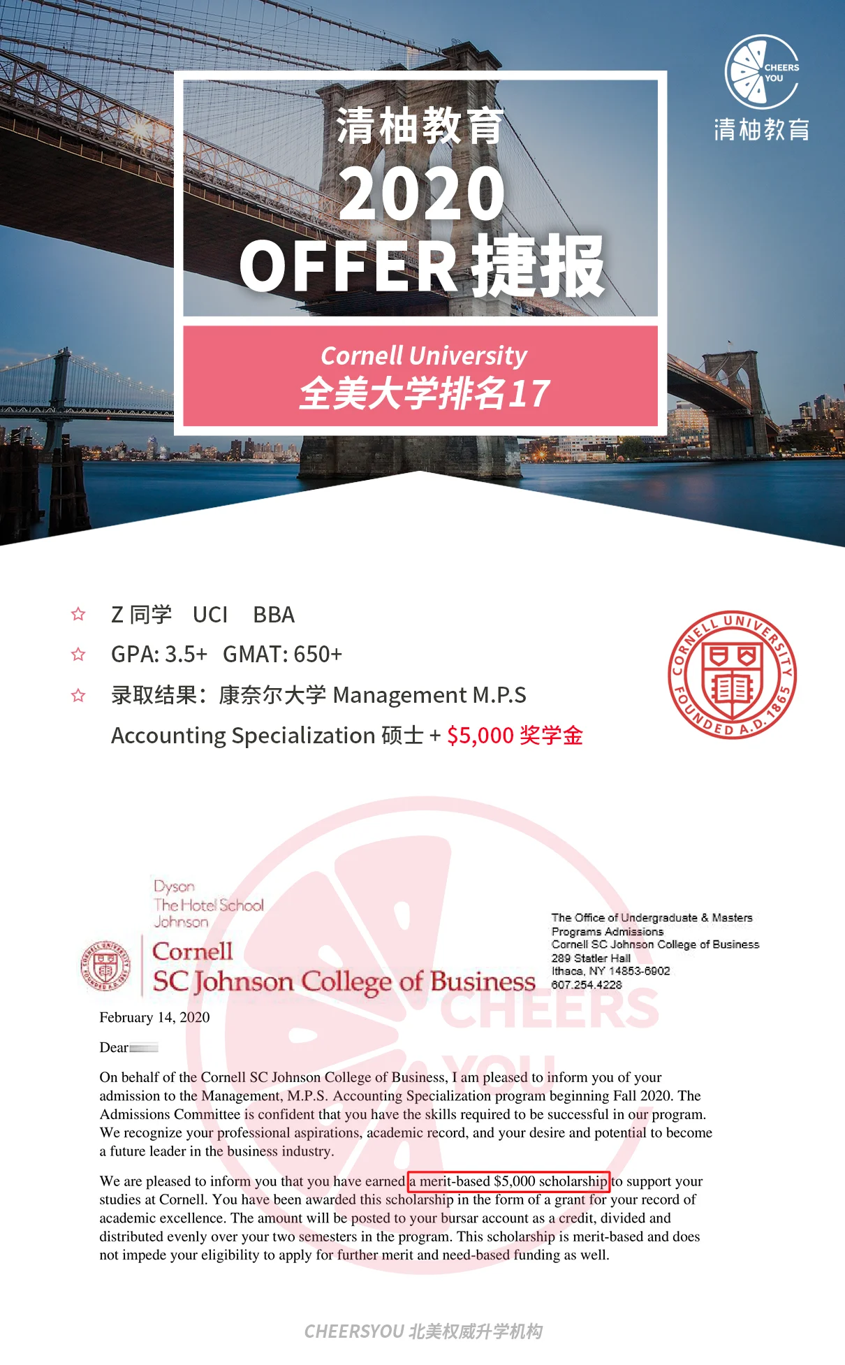 录取:纽约大学Accounting,康奈尔大学MPS-Accounting,密歇根大学安娜堡分校Accounting,南加州大学Accounting $12,000奖学金,华大圣路易斯Accounting, 波士顿学院Accounting, 福特汉姆大学Professional Accounting $20,000奖学金等