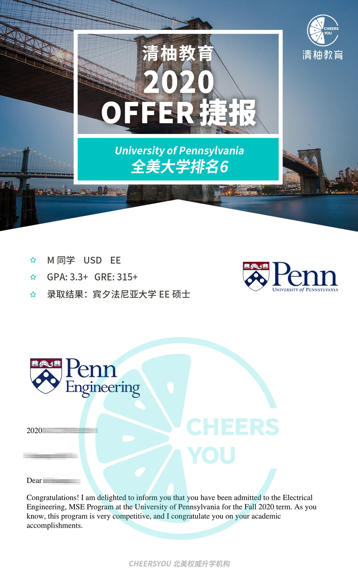 在一番沟通考虑后,Henry决定主申EE的研究生。在选校时,清柚老师也结合他的想法意愿,为他推荐了一系列综排高的EE项目,同时也向藤校宾大发起冲刺。