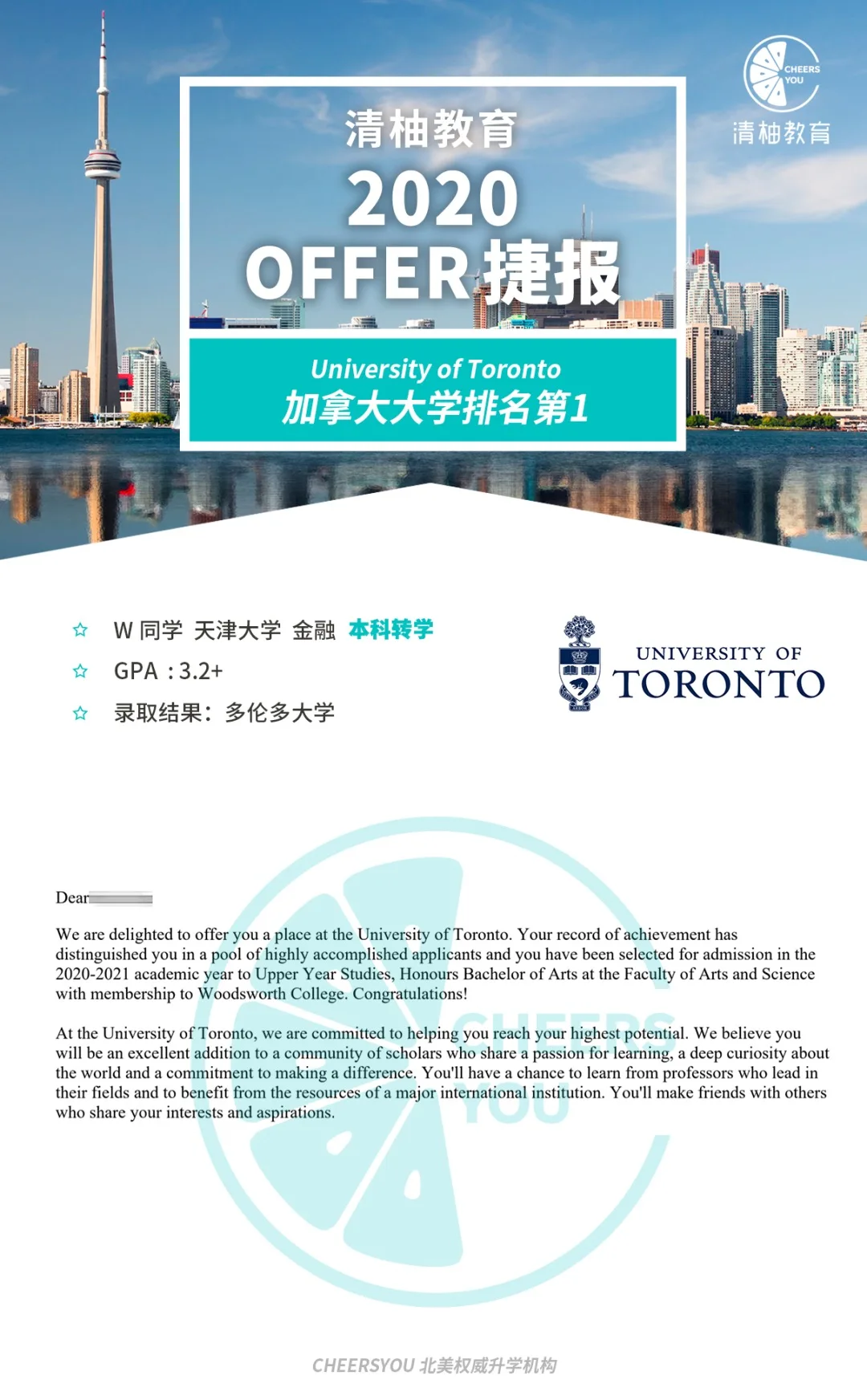 清柚老师建议,既然GPA提升的空间不大,就从申请材料的其他方面着手,将背景和文书作为申请的主发力点,剑走偏锋冲击顶尖名校。为了William的心愿,加拿大Top 3就是我们选定的目标。